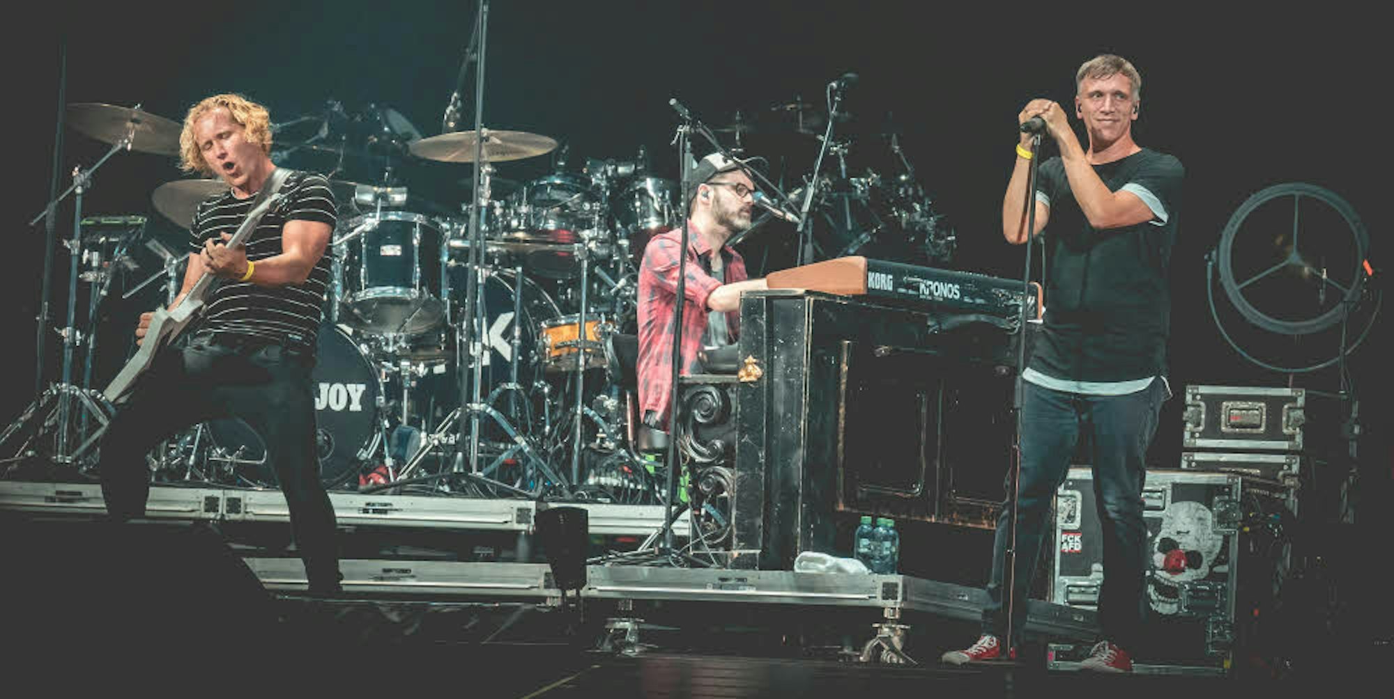 Und einer aus der Band war sichtlich glücklich und zufrieden: Das Stadionkonzert war das Comeback für Schlagzeuger Nils Plum, der mehr als ein halben Jahr wegen einer Schulterverletzung pausieren musste und in der Zeit vom befreundeten Drummer-Kollegen Lukas Berg ersetzt worden war. „So ein Konzert kann man dann als Einstand schon mal machen“, witzelte Campmann und Peil fügte lachend hinzu, dass Plum ja nichts Neues lernen musste. „Die Lieder kennt er natürlich alle noch.“