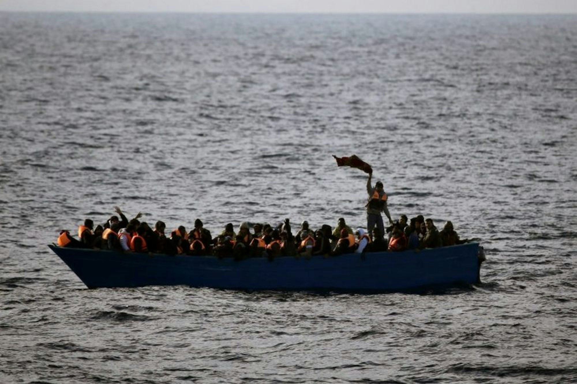 Ein Flüchtlingsboot in Seenot im Mittelmeer