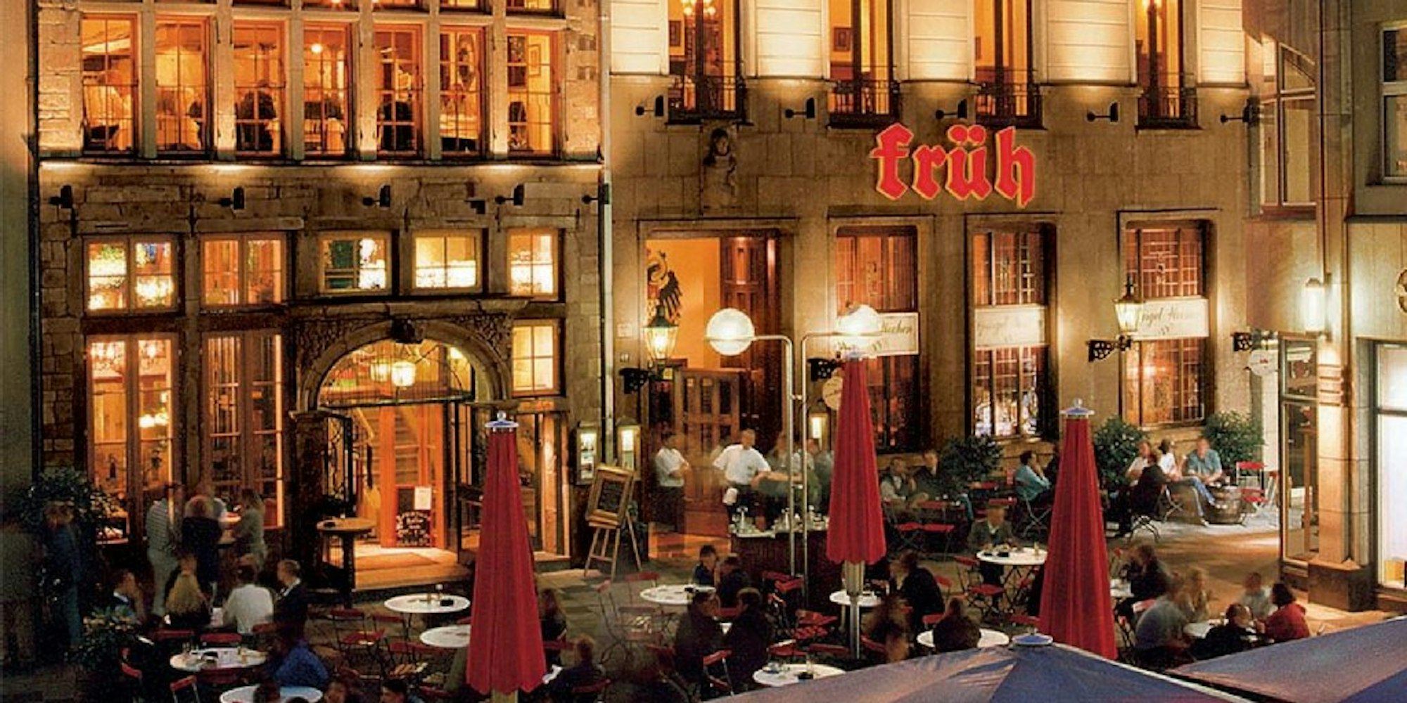 Das Brauhaus Früh am Dom liegt - wie der Name schon sagt - nur einen Steinwurf vom Kölner Dom entfernt. Im Biergarten direkt am Heinzelmännchenbrunnen lässt sich im Sommer das Kölsch besonders gut genießen.