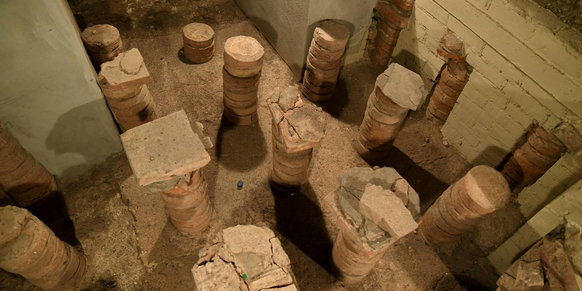 Hypokausten-Heizung: Die Bodenplatten ruhten auf Ziegelsäulen, darunter zirkulierte heiße Luft von einer Feuerstelle.