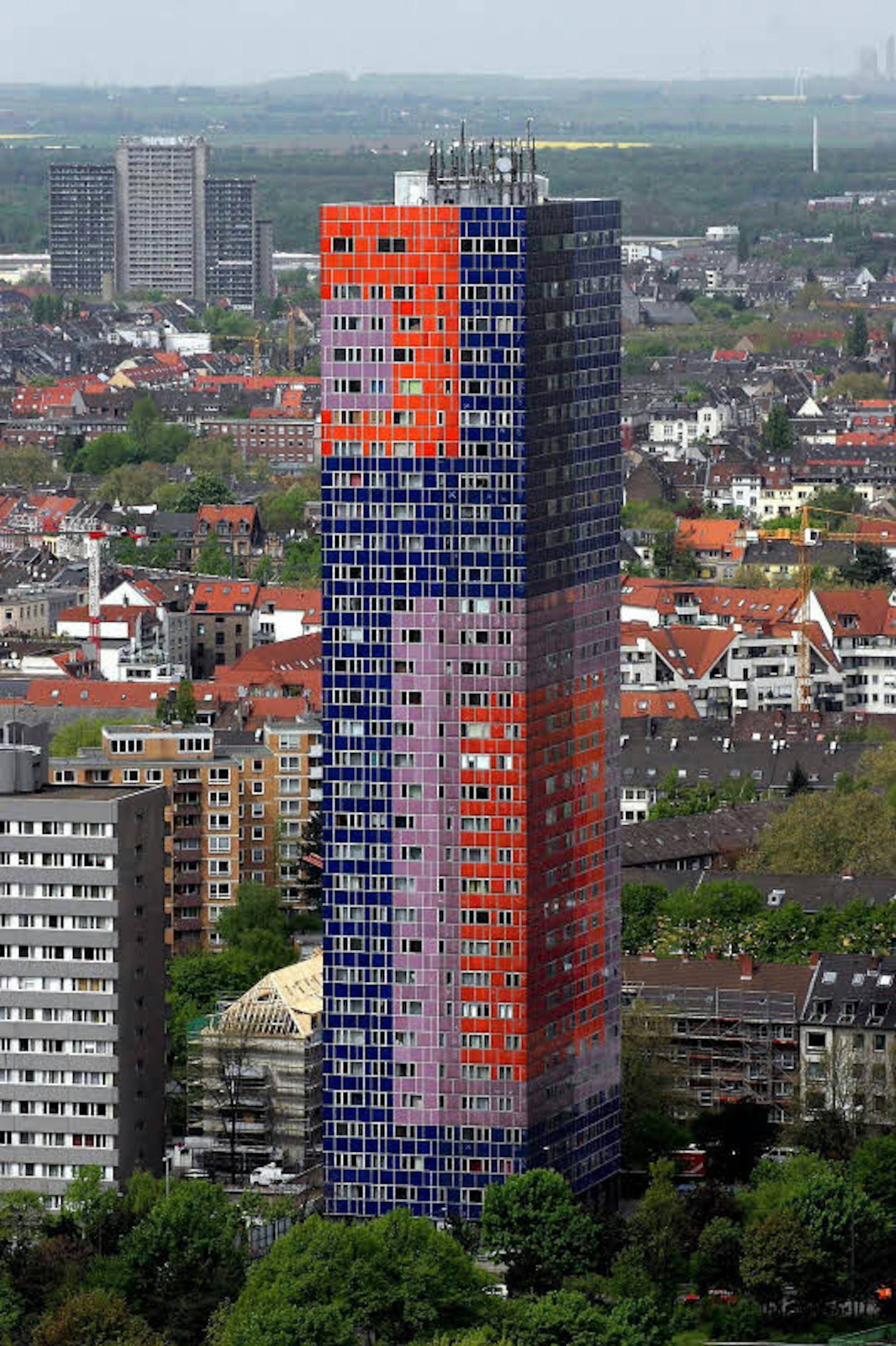 Der Axa-Wohnturm am Rheinufer in Riehl ist mit seinen 352 Wohnungen auf 45 Stockwerken seit 1973 das höchste Wohnhaus Deutschlands. An dem vom Kölner Architekten Henrik Busch entworfenen Hochhaus hat zwischenzeitlich schon der Zahn der Zeit genagt: 2010 begann die marode Fassade zu bröckeln, einige der Waschbetonplatten drohten herabzustürzen. Sie sollten durch eine Außenhaut aus Aluminium ersetzt werden, da das Haus aber seit 2015 denkmalgeschützt ist, liegt die Sanierung immer noch auf Eis.