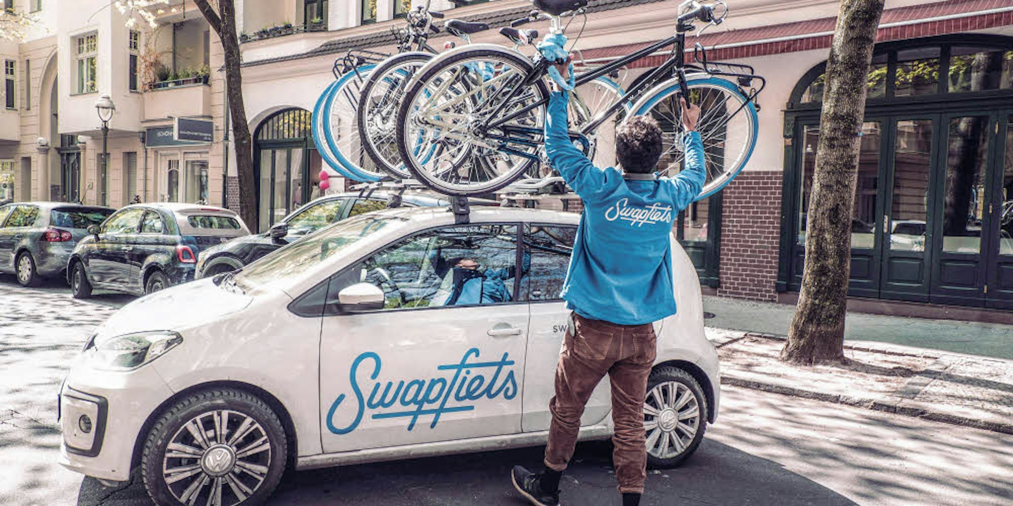 Swapfiets, deutlich erkennbar am blauen Vorderreifen, wurde 2014 gegründet, um das größte Problem am Fahrradfahren zu lösen – ein eigenes Fahrrad zu besitzen, ohne sich um die Wartung kümmern zu müssen. Die Idee kommt gut an. In kürzester Zeit entwickelte sich der Kundenstamm bei Swapfiets auf 100.000 Abonnenten in den vier Kernmärkten Niederlande, Deutschland, Belgien und Dänemark.