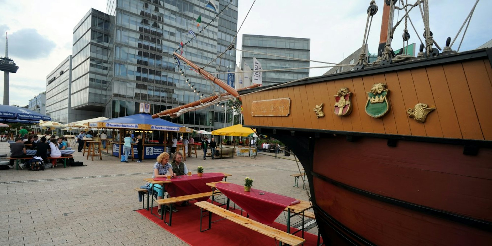Ebenso ungewöhnlich wie manch Bier, sind auch die Stände, an denen dieses ausgeschenkt wird. Bei Wirt Hans Wittler ist man zum Beispiel Gast an der größten, drehenden Karussellbar der Welt, während Fans hanseatischer Braukunst ihr Störtebecker-Pils stilecht über die Reling einer Dreimastkogge gereicht bekommen. Den traditionellen Bierfassanstich zur Eröffnung der Börse übernahm am Freitagnachmittag Bürgermeister Manfred Wolf (FDP). Anders als sein Vorgänger Hans-Werner Bartsch im vergangenen Jahr machte Wolf mit dem Zapfhahn kurzen Prozess: Nach einem Schlag mit dem Holzhammer floss bereits das erste Kölsch.