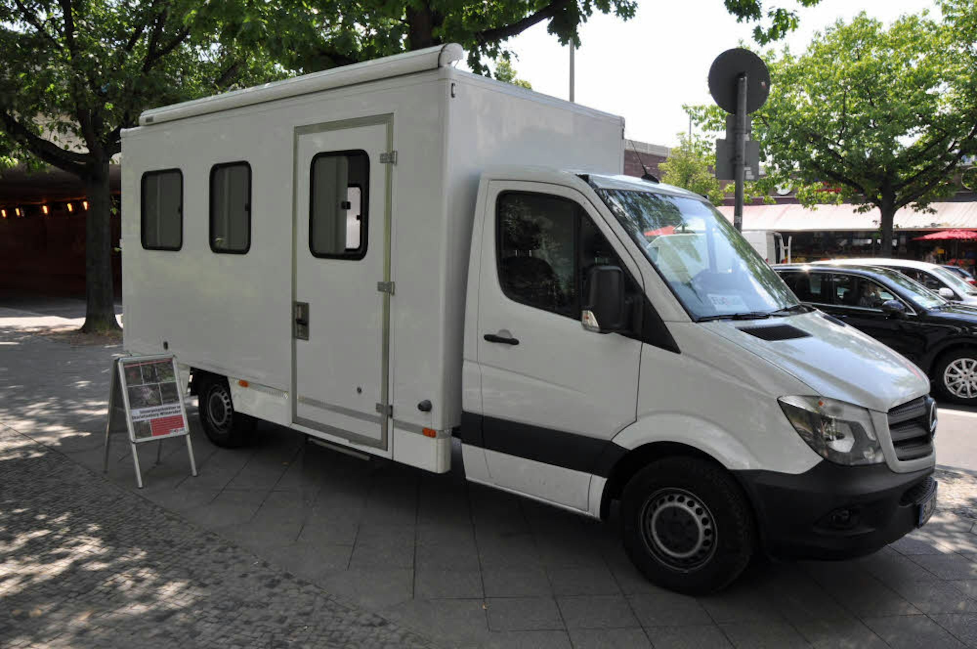 Der zum dezenten Drogenkonsummobil umgebaute Kastenwagen des Vereins Fixpunkt wird in Berlin zurzeit am Stuttgarter Platz in Charlottenburg eingesetzt.