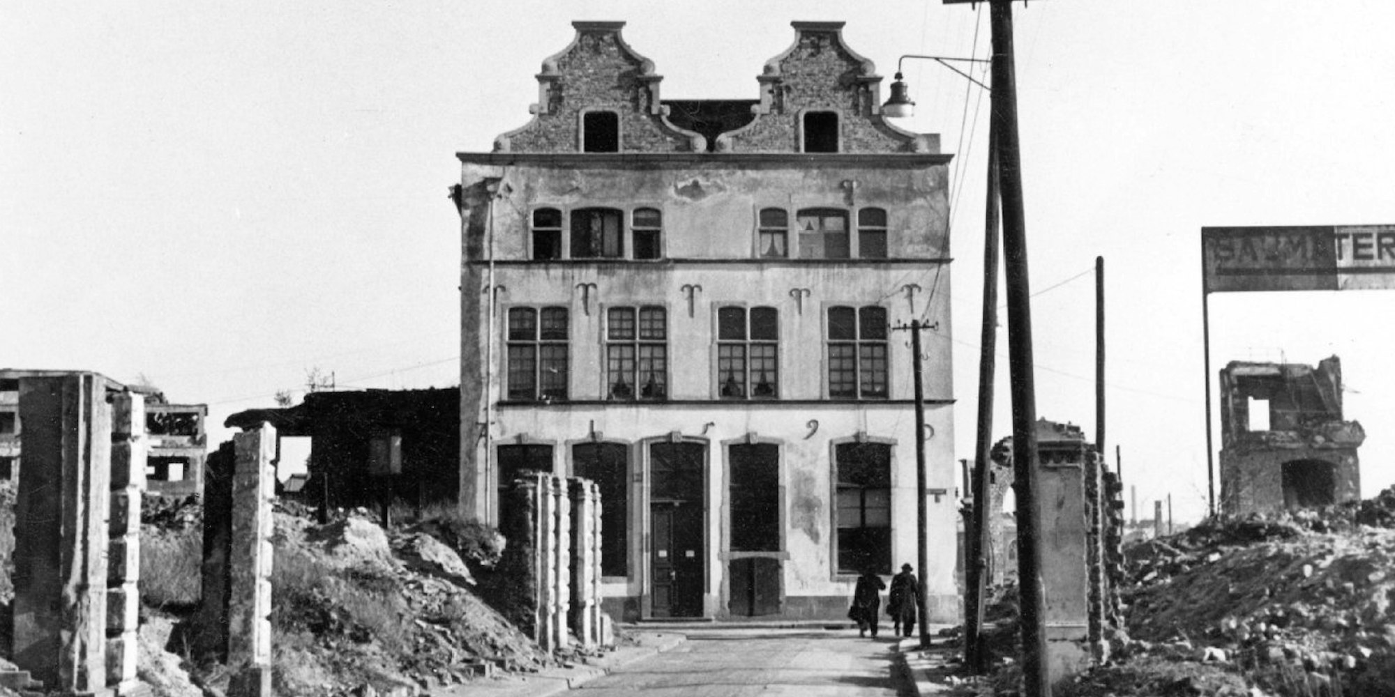 Nur vier Jahre nach der Restaurierung, 1943, wurde das Viertel um den Großen Griechenmarkt während der Bombenangriffe auf Köln fast völlig zerstört. Brand- und Sprengbomben vernichteten die Nachbarschaft, nahmen den Menschen ihr Zuhause, ihre Erinnerungen, ihr Leben. Auch das Haus Bachem wurde getroffen, doch die Grundmauern trotzen den Angriffen. Zwar brannten der Dachstuhl und die darin liegenden Wohnungen komplett aus, die tragenden Wände sowie das Erdgeschoss mit der barocken Wendeltreppe und den Hängestuben blieben erhalten. Gemeinsam mit dem Wasserturm hatte der „Große Bachem“ den Zweiten Weltkrieg überlebt. Und so entschloss sich Ada Limbourg, das Haus erneut restaurieren zu lassen. „Als mein Vater aus dem Krieg kam, hat er sich Werkzeug vom Wasserturm geliehen“, erzählt Limbourg. „Es gab ja kein Material, nichts. Ringsherum war alles kaputt. Kleine Lorenzüge brachten den Schutt weg.“ Eine Szenerie, die sich bis 1958 kaum veränderte. Kurt Limbourg war zu dieser Zeit 14 Jahre alt. Sein Schulweg zum Friedrich-Wilhelm-Gymnasium, das 1957 neu errichtet wurde, führte jeden Tag über das Trümmerfeld; vorbei am Besitz seiner Großmutter.