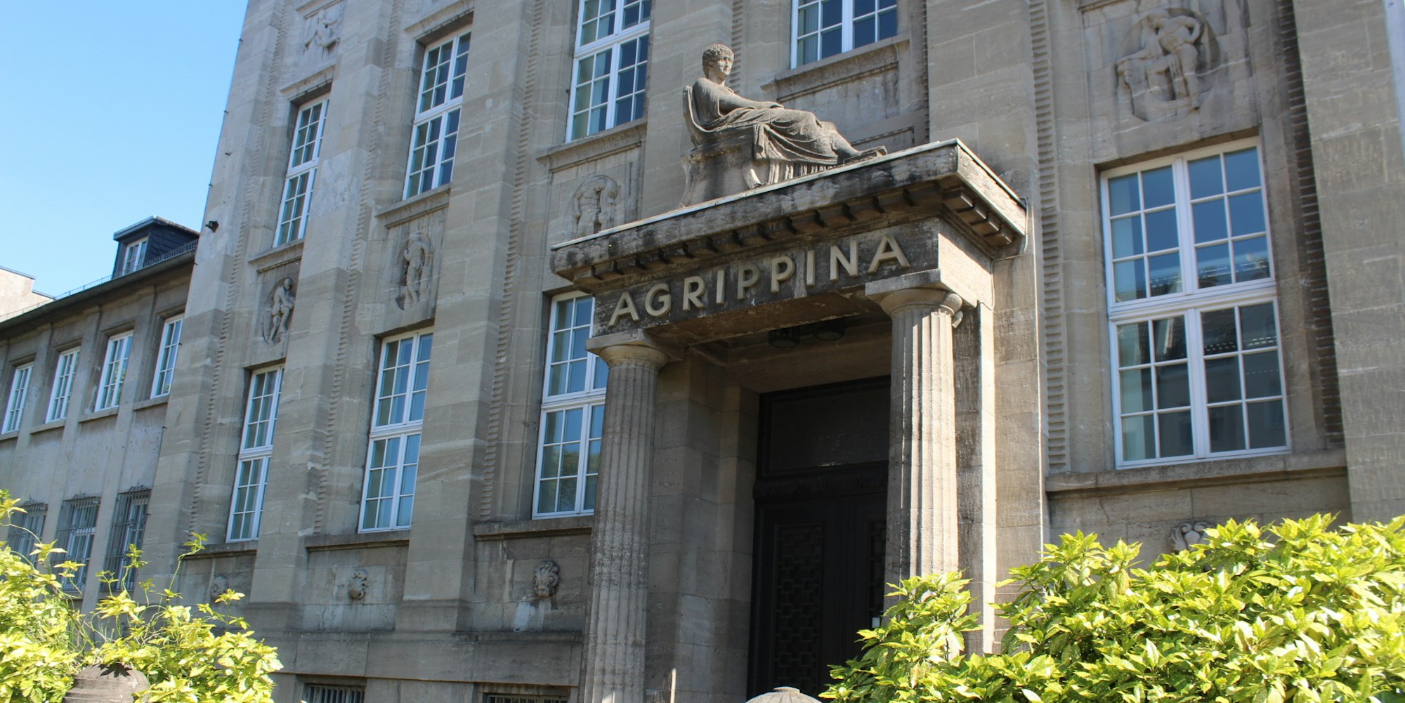 Agrippina thront über einem der denkmalgeschützten Häuser des Viertels, die beim Entwicklungsprojekt stehen bleiben werden.