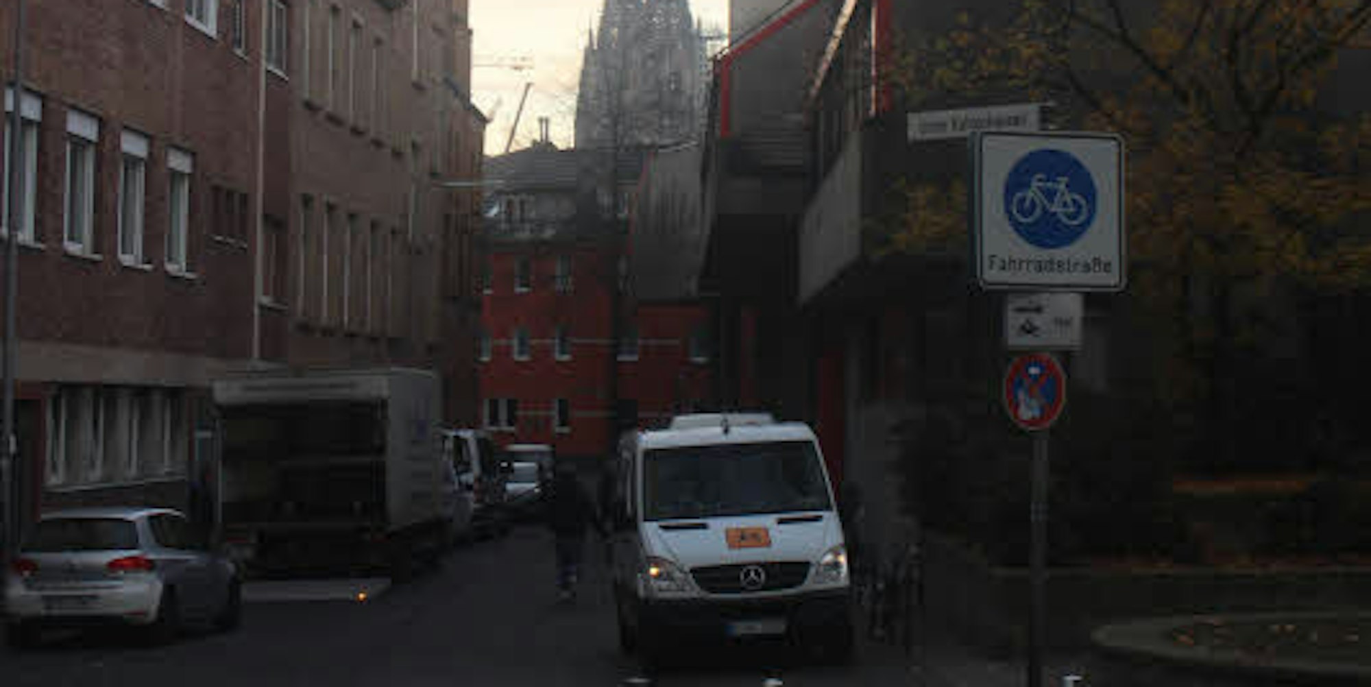 Innenstadt – Jeden Morgen und Nachmittag das gleiche Schauspiel. Klinik-Anlieferer, Kleinbusse und Privat-Pkw drängen sich auf dem knapp 100 Meter langen Abschnitt der Straße Unter Kahlenhausen im Kunibertsviertel, zwischen der Rückseite des St.-Marien-Hospitals und der Hochschule für Musik und Tanz. Radfahrer und Fußgänger erwartet ein Slalom rund um geparkte Fahrzeuge – und man muss aufpassen, nicht angefahren zu werden.