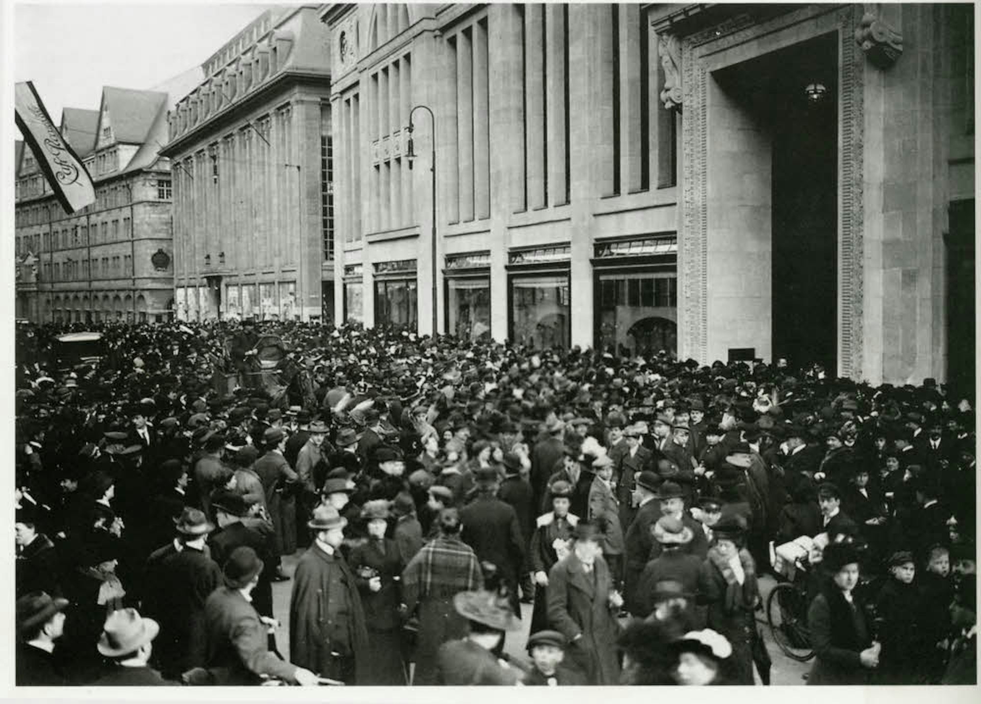 Riesen-Andrang zur Eröffnung: Am 14. April 1914 öffnet das vergrößerte Warenhaus.