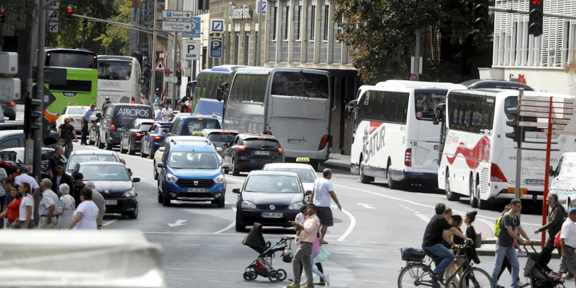 Würde man den ungeeignetesten Platz für eine Touristenbus-Haltestelle suchen, käme man mit einiger Sicherheit auf die Goldgasse. Das kurze Straßenstück zwischen Rheinufer und Hauptbahnhof neben dem blauen Zelt ist schon jetzt ein Nadelöhr für alle, die zur Rückseite des Bahnhofs wollen.