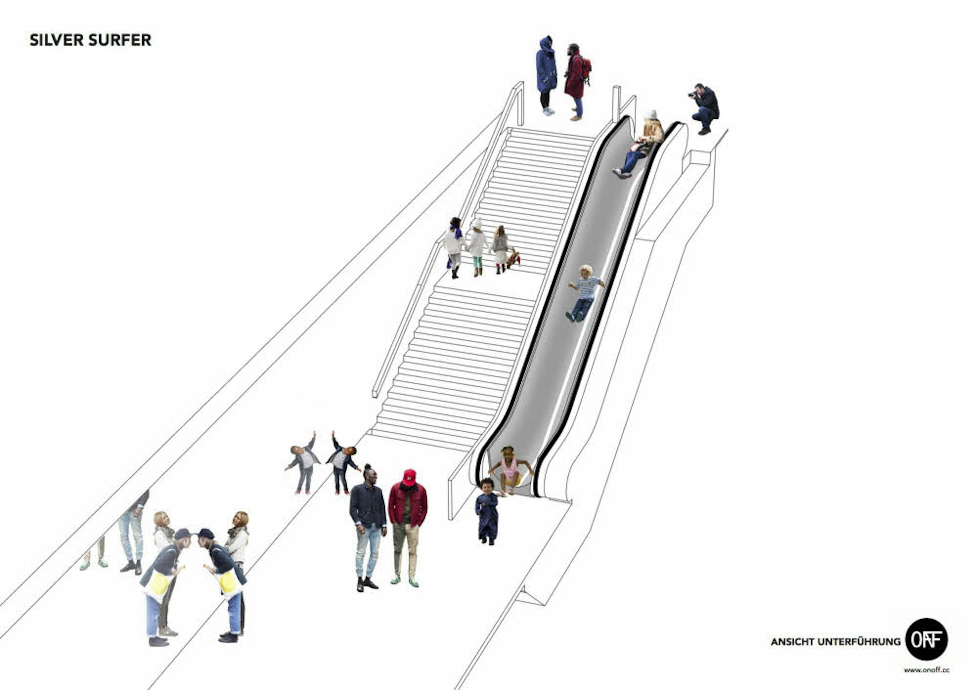 Eine Jury, besetzt unter anderem mit örtlichen Galerie-Inhabern und Vertretern der Stadt Köln, hat acht Entwürfe ausgewählt, die möglichst schnell verwirklicht werden sollen. Eine der Rolltreppen soll beispielsweise in eine Rutschbahn verwandelt werden, die dann den Namen Silver Surfer tragen wird. Der Kunstbeirat hat sich der Empfehlung der Jury angeschlossen.