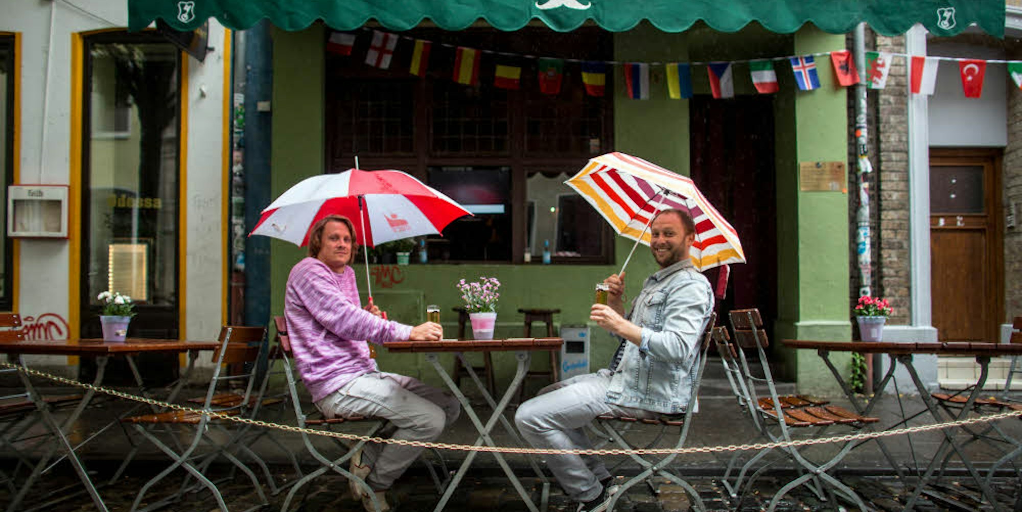Die „Schnörres“-Wirte Philipp Treudt (l.) und Marco Martins (r.) am ursprünglichen Kneipen-Standort.