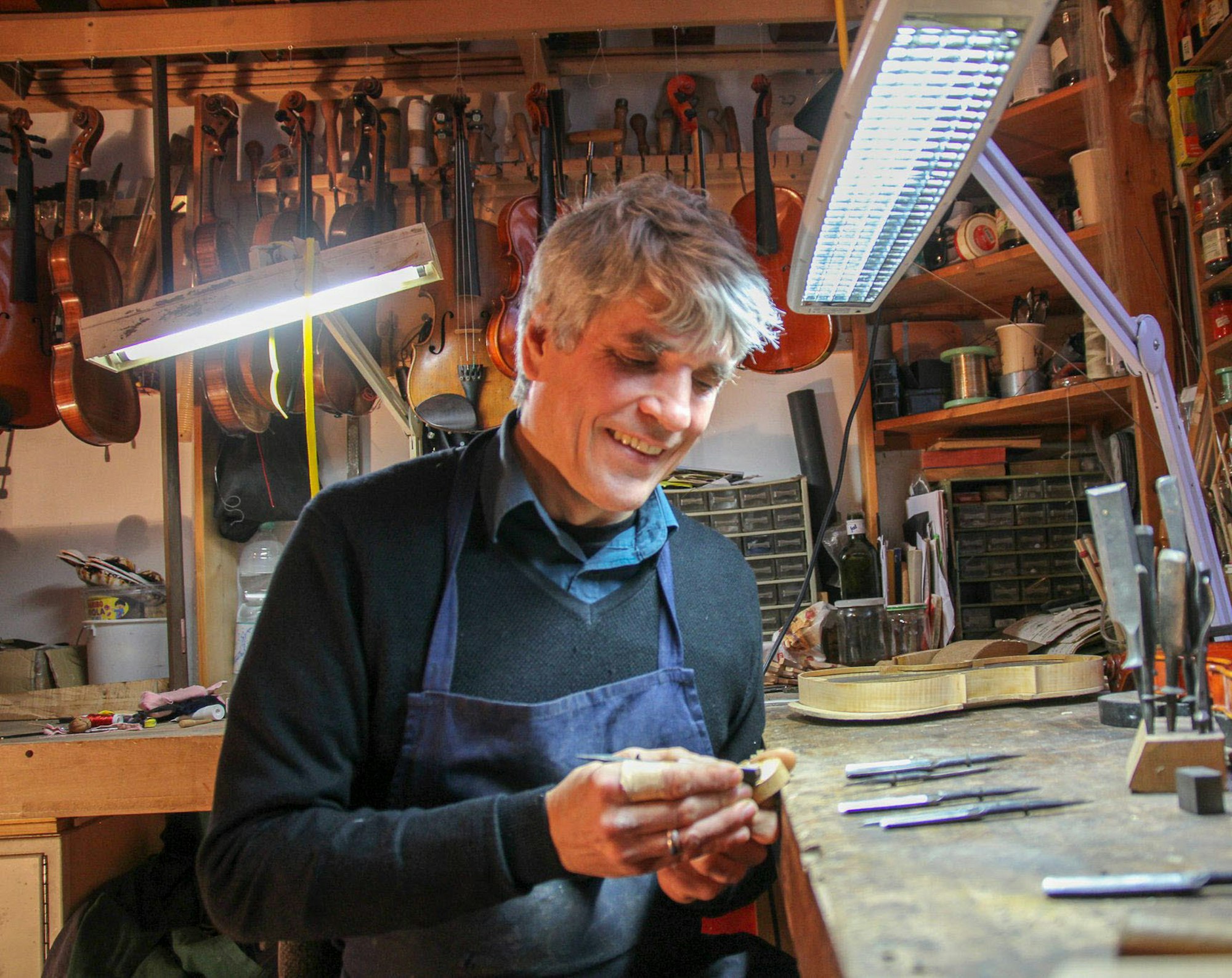 Markus von Wrochem baut am liebsten selbst Geigen. Meist repariert er Instrumente, die ihm gebracht werden.
