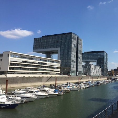 Drei Hingucker sind in dem sehr jungen Veedel natürlich die Kranhäuser. Da wo vormals die Ratten im für die Öffentlichkeit unzugänglichen Zollhafen ein auskömmliches Leben führten, geht es heutzutage sehr schick zu. Die Quadratmeterpreise für Wohnungen sind zum Teil fünfstellig.