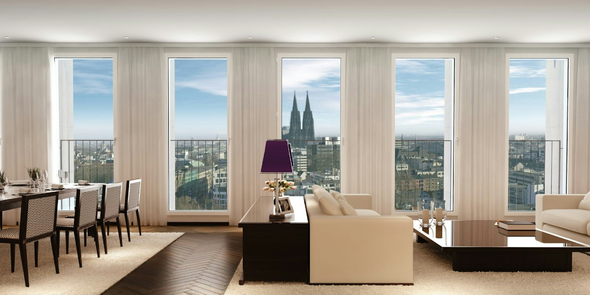 Die teuerste Wohnung mit einer Fläche von knapp 350 Quadratmetern wurde im Stadtteil Altstadt/Nord für 5,9 Millionen Euro veräußert. Das Penthause im Gerling-Quartier hat damit einen Quadratmeter-Preis von 17.000 Euro.