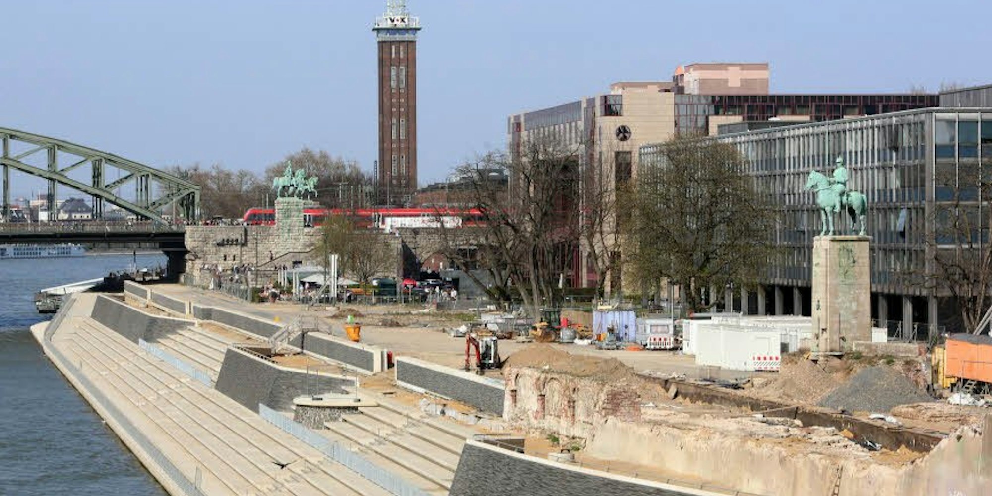 Deutz – Nur noch wenige Steine fehlen, um die Freitreppe des Rheinboulevards am Deutzer Rheinufer zu vollenden. Bis zu 10.000 Menschen sollen auf den hellen Betonstufen gegenüber der Altstadt Platz finden. Sie werden Müll und Schmutz hinterlassen und einige von ihnen werden versuchen, die Rhein-Tribüne mit Graffiti zu besprühen.