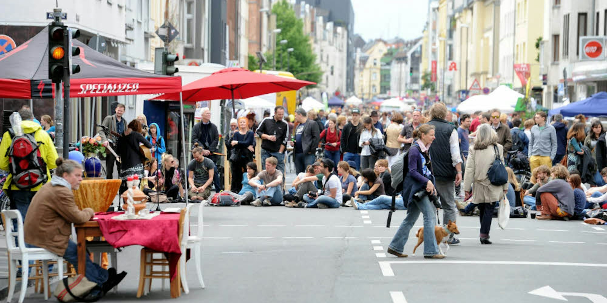 Gutes Leben in Sülz: Autofreier Tag auf der Berrenrather Straße/Ecke Weyerthal im Mai 2015.