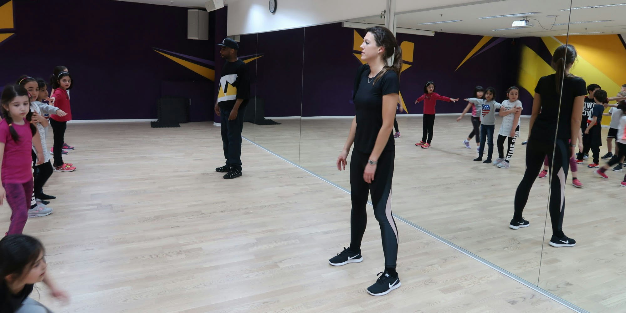 Gemeinsam wird vor den Spiegeln trainiert.