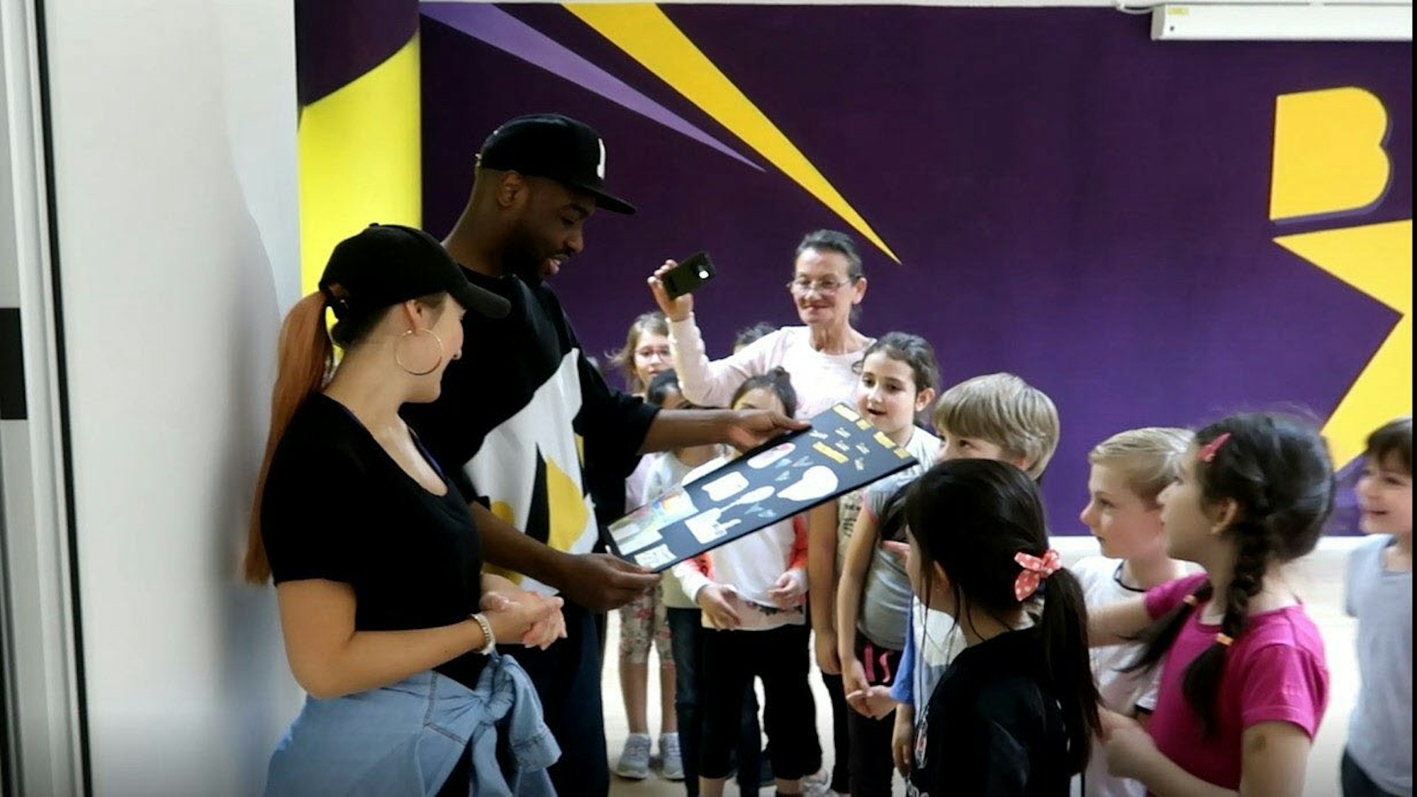 Nach energiegeladenen zwei Stunden gemeinsamen Trainings und Üben überreichten sie dem Team eine große Dankeskarte mit eigens getextetem Gedicht. Auch wenn der Star selbst am Ende doch nicht auftauchen sollte, hatten die Kinder Spaß. Ihre neu erlernte Choreografie wollen sie in der Schule weiter tanzen und perfektionieren – und wer weiß, vielleicht gibt es ihn auch mal bei einem Schulfest zu sehen?