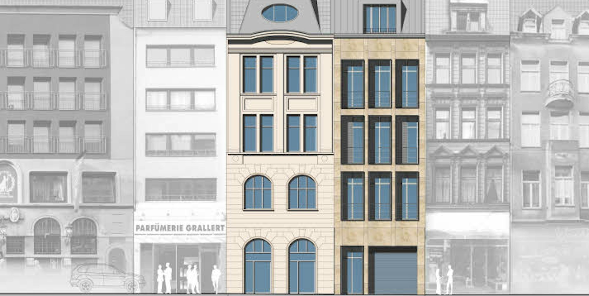 Insgesamt ist der Bau von sieben Wohnungen vorgesehen. Dafür muss die Immobilie aufgestockt werden. Zudem soll eine Tiefgarage gebaut werden. In der Gewerbeeinheit im Erdgeschoss soll ein Restaurant eröffnet werden, „damit sich die Immobilie auch den Menschen im Viertel öffnet“, so Neven DuMont.