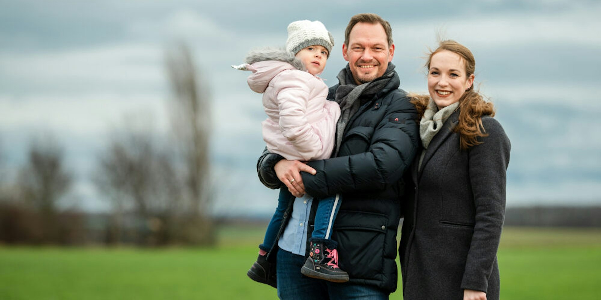 Björn Braun, hier mit Ehefrau Maike und Sohn Konstantin, wird sich als Jungfrau „Gerdemie“ nennen.