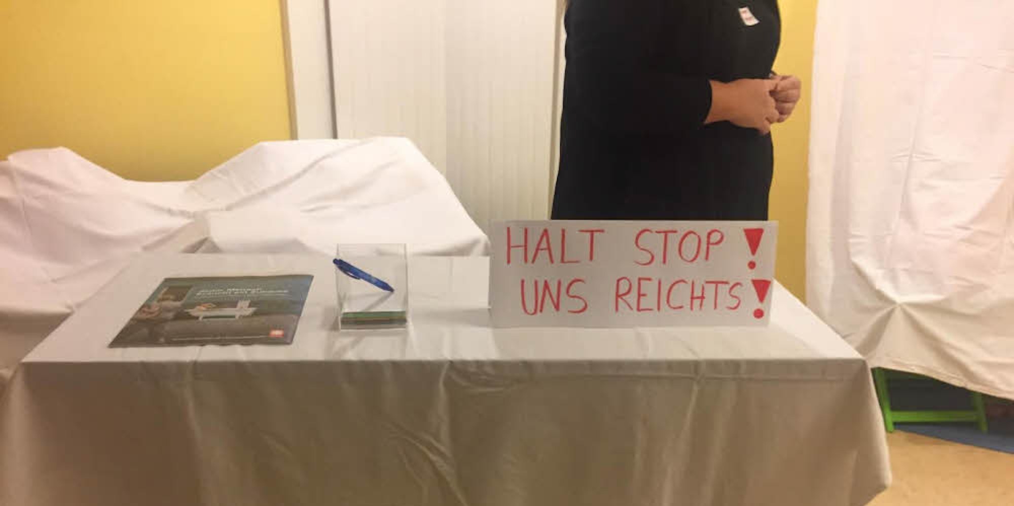 Ein Höhepunkt der Eskalation war erreicht, als die Erzieherinnen die Beerdigung des Kinderhauses inszenierten: „Alle Mitarbeiterinnen erschienen schwarz gekleidet zur Arbeit, in den Fenstern wurden Grablichter aufgestellt, die Räume mit weißen Laken verhängt“, so beschreiben es mehrere Eltern. „Unsere Kinder glaubten, die Kita-Leiterin sei gestorben und haben furchtbar geweint.“ Die Mitarbeiterinnen hätten am Eingang einen Tisch aufgestellt mit Plakaten „Halt Stop! Uns reichts!“. „Teile des Elternbeirats haben uns vorgeworfen, dass wir die Einrichtung kaputt machen. Es war wie ein Spießrutenlauf.“
