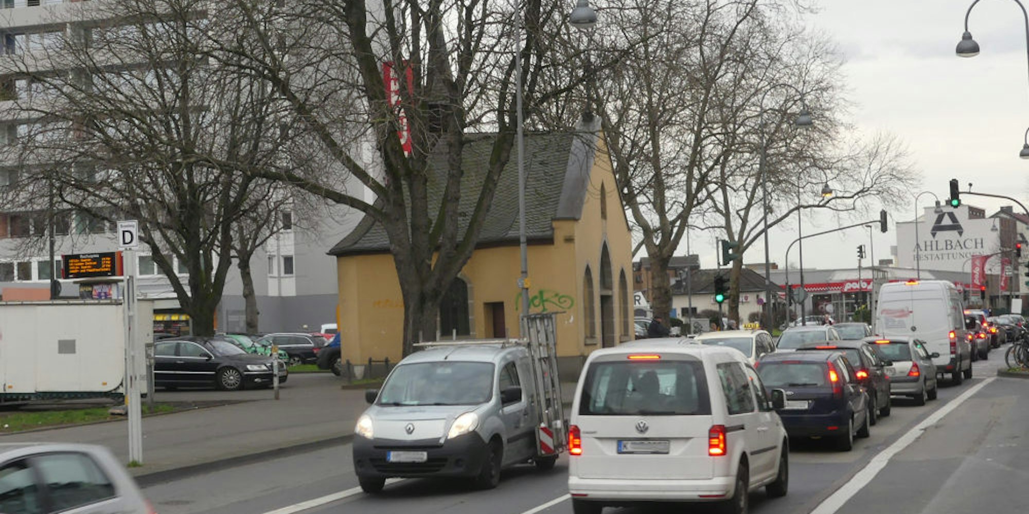 Eine Bickendorfer Initiative will die Fahrbahn der Venloer Straße auf die Rückseite der Rochuskapelle verlegen lassen.