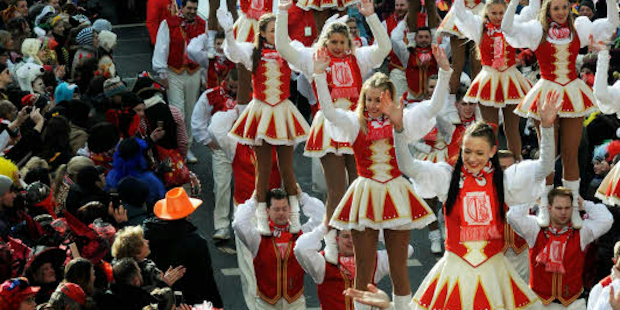 Das Tanzkorps Colonia Rut-Wieß von der KG Schlenderhaner Lumpe im Zoch