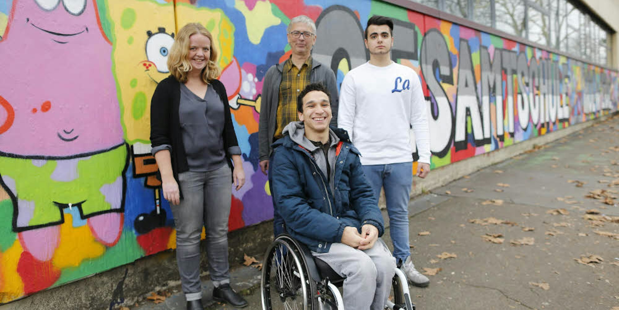 Eine gute Organisation in Teams führt nicht nur dazu, dass sich alle Lehrer einer Klasse austauschen und gemeinsam um die Förderung der Schüler kümmern. Sie ermöglicht auch, dass Klassen immer wieder von zwei Lehrern unterrichtet werden können. „Diese Doppelbesetzung ist eine wichtige Bedingung, wenn Inklusion gelingen soll“, sagt der 19-jährige Niklas Perez-Mey. Der Abiturient sitzt mit einer spastischen Lähmung in Beinen und einer Hand im Rollstuhl. Als Schülersprecher der größten Schule Nordrhein-Westfalens fordert er von der neuen Landesregierung, dass der seit Jahren fortschreitende Abbau von Standards endet und mehr Geld für die Schulen zur Verfügung gestellt wird.