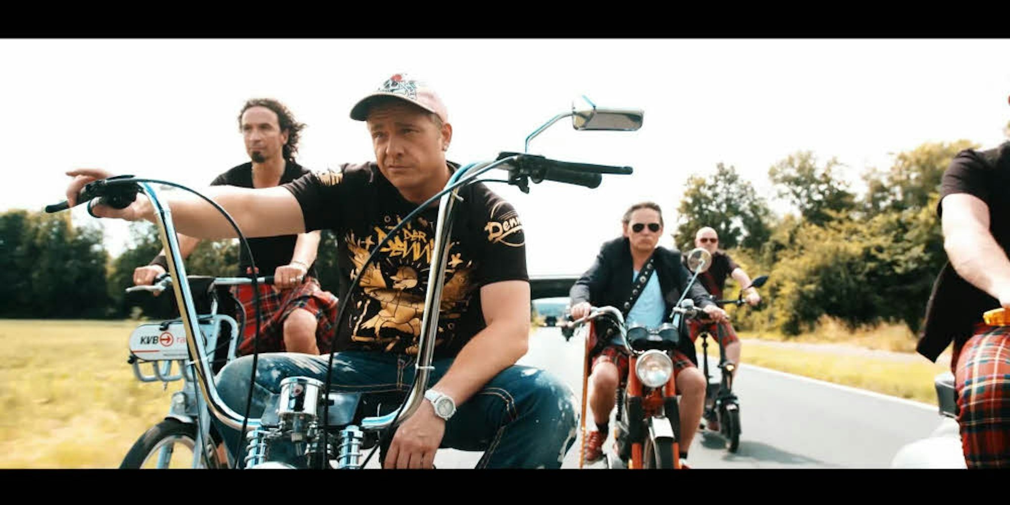 Dennis aus Hürth (2.v.l) unterwegs mit Brings auf Rädern und Mofas