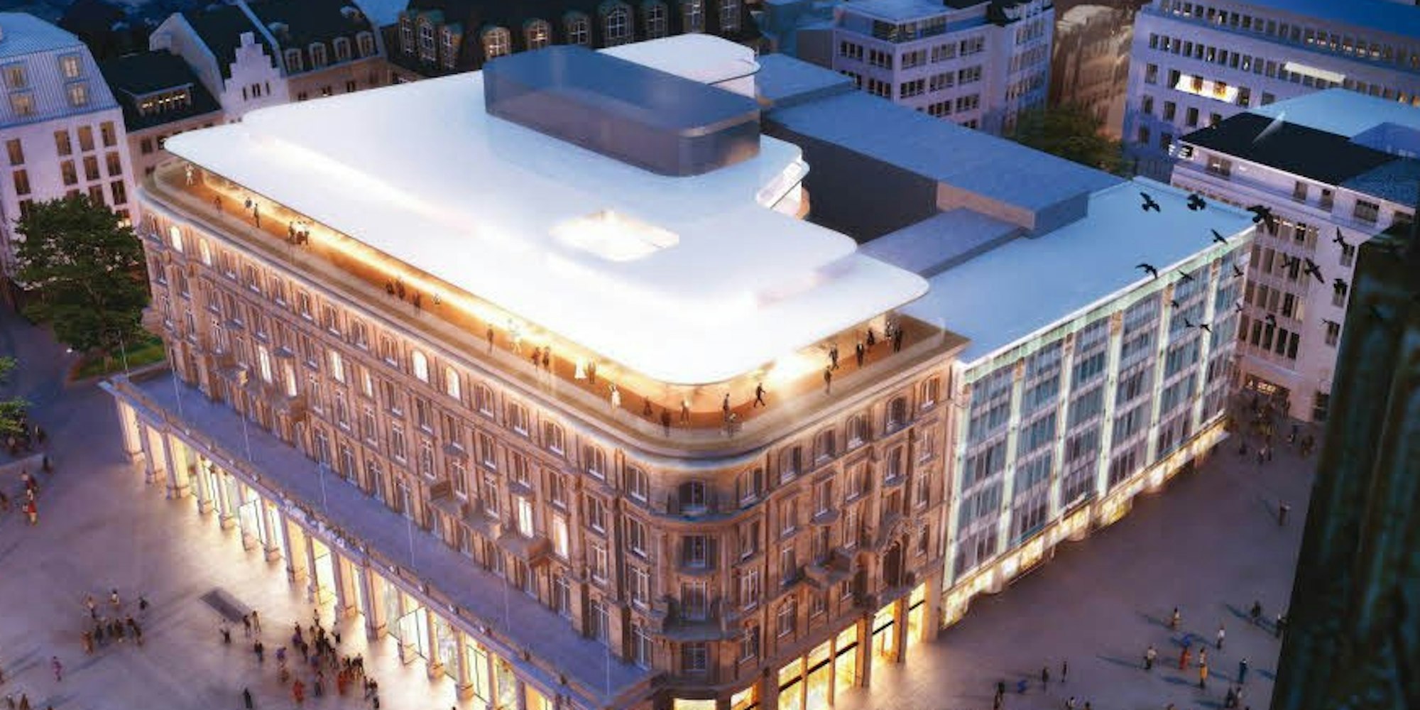 Das Dom-Hotel soll ein gläsernes Flachdach erhalten. Der Haupteingang wird auf den Roncalliplatz verlegt.