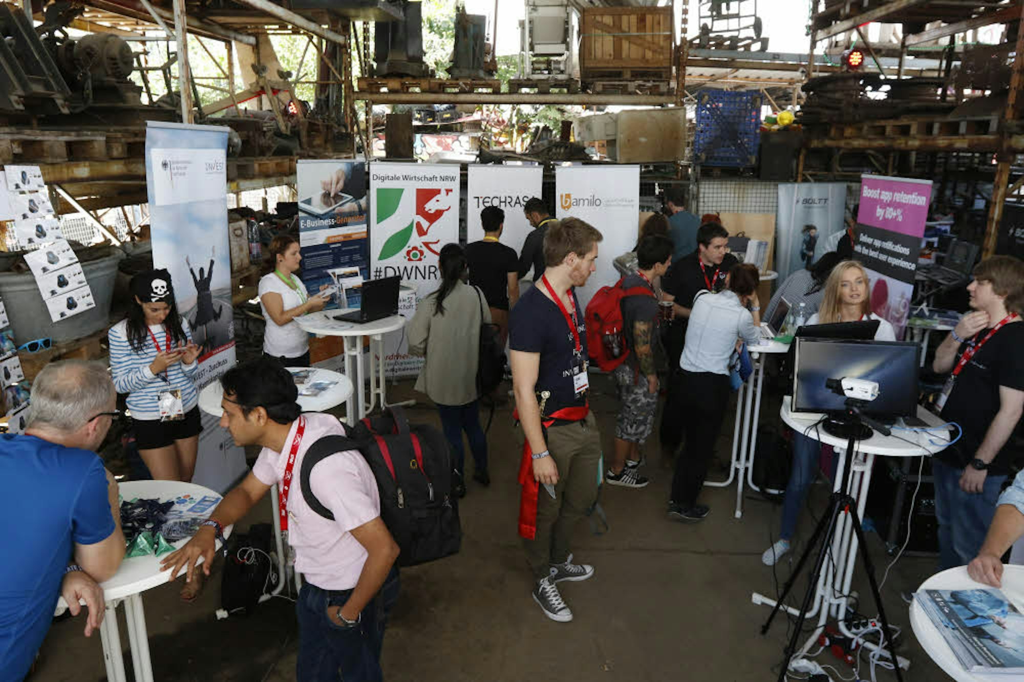 Es herrscht Aufbruchstimmung zwischen neu-entwickelten Getränken, die bei der Veranstaltung angeboten werden, finanzkräftigen Investoren und der einzigartigen Atmosphäre zwischen Bahngleisen und Schrottplastiken im Sonnenschein.