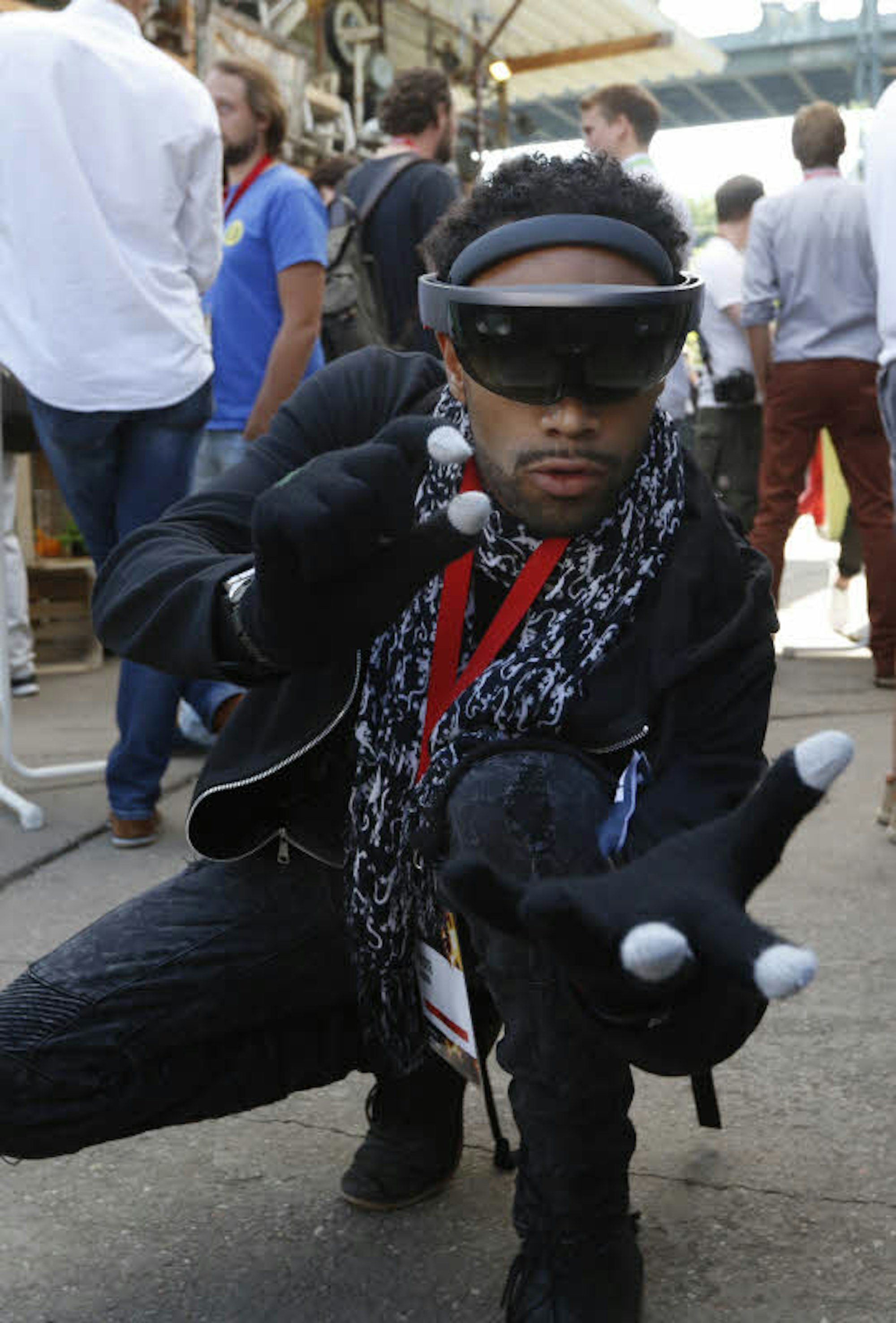 Aus rund 70 Ländern sind Gründer und Geldgeber angereist, insgesamt nehmen etwa 1000 Personen am „Pirate Summit“ teil. Ptah Dunbar ist extra aus Miami gekommen. Sein Spitzname: Pirat. Er trägt auch sonst eine Augenklappe – seit einem Unfall ist er auf einem Auge blind. Gerade sind aber sowieso beide Augen verdeckt. Er trägt die Microsoft Holo Lens, eine Brille, die mit „Augmented Reality“ (dt. erweiterte Realität) arbeitet, um virtuelle Objekte in den realen Raum zu projizieren.