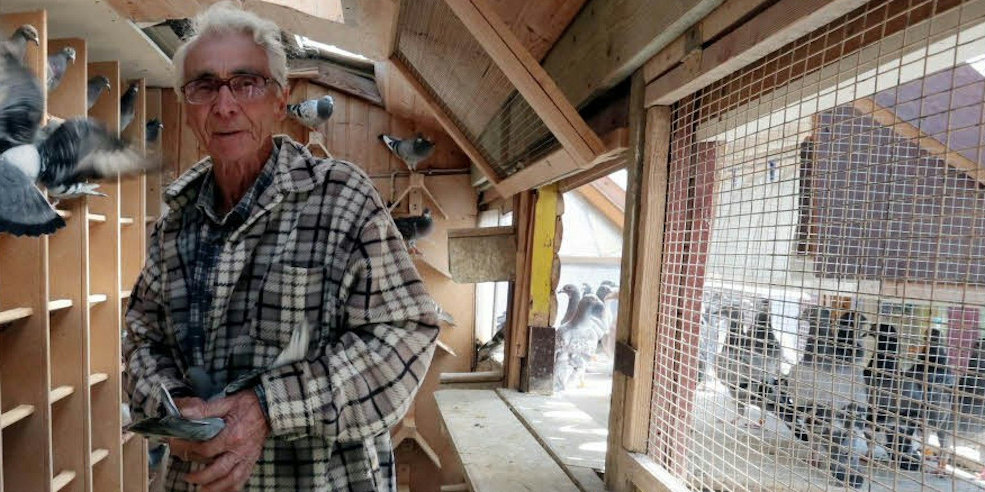 Züchter Gerhard Michels in seinem Taubenschlag