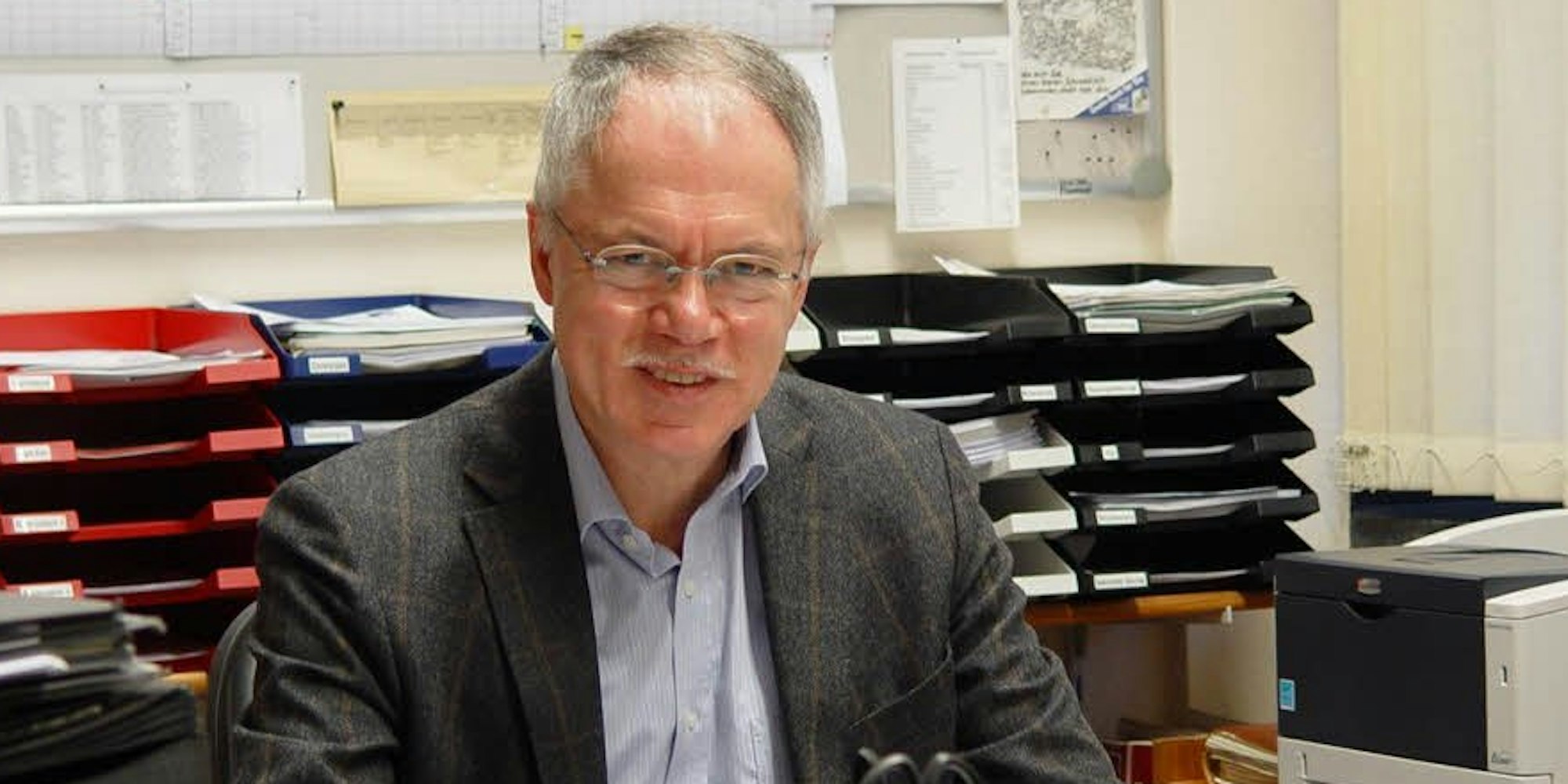 Vielfältiges Fächerangebot: Klaus Zimmermann an seinem Schreibtisch.