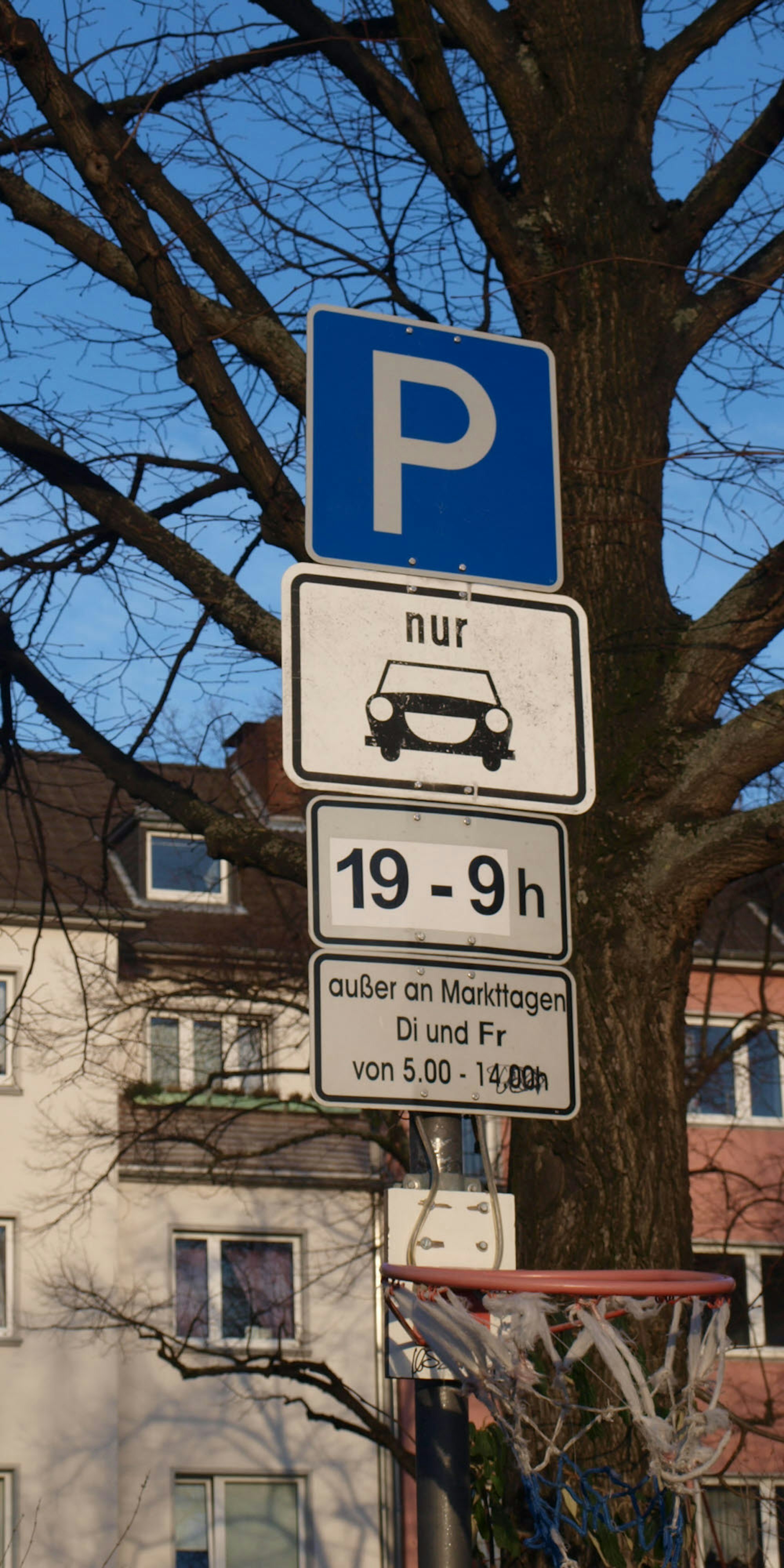 Autos dürfen laut Schild nur von 19 bis 9 Uhr parken.