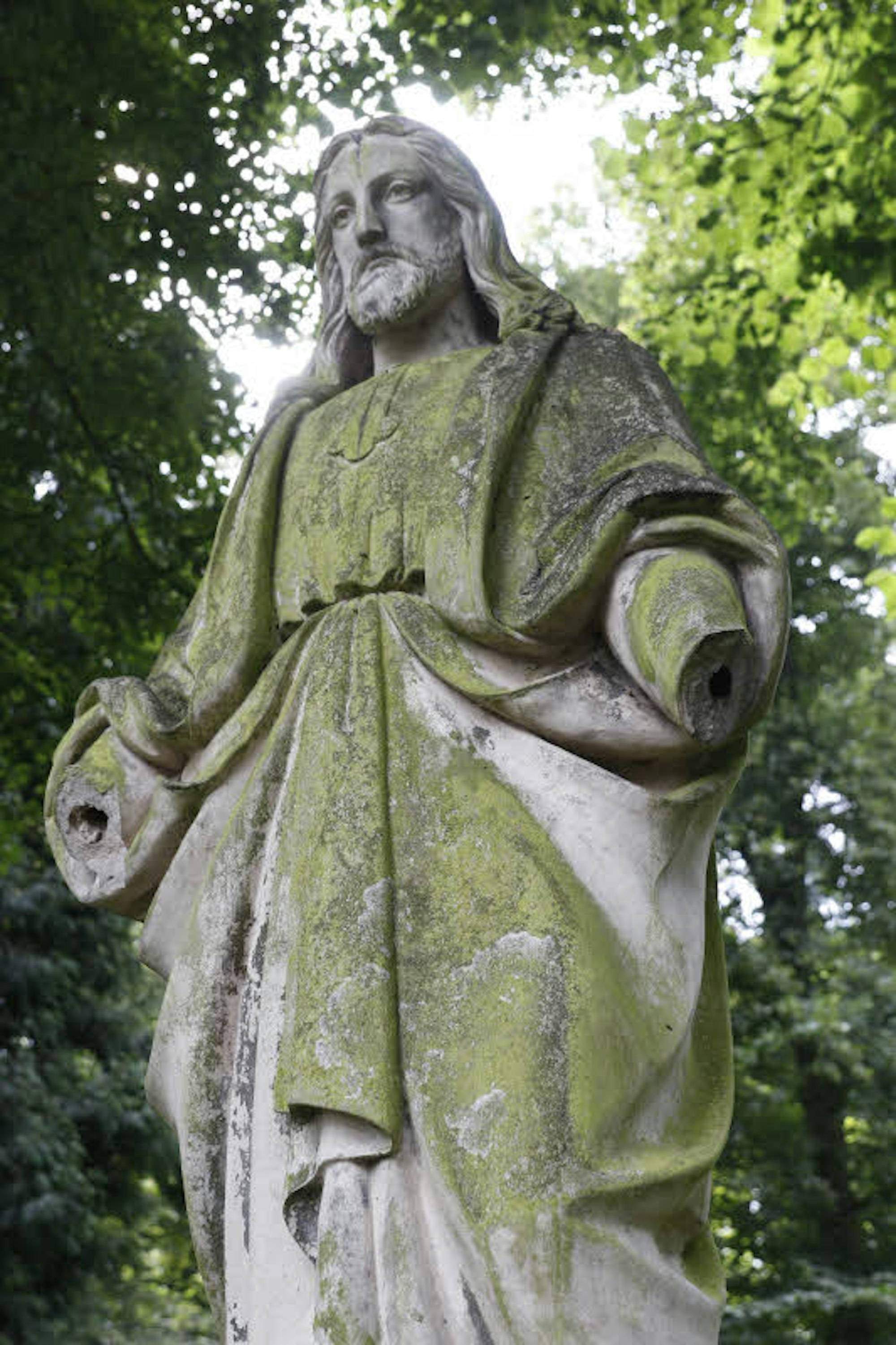 Auch der Lindenthaler und Mitglied der Bürgergesellschaft Köln, Peter Geppert, der regelmäßig mit Hund Caruso eine Runde über den Friedhof dreht, bedauert die mangelnde Pflege des Areals, weiß aber seine Besonderheiten zu schätzen wie beispielsweise die Jesusstatue, der mittlerweile die Hände wie auch eine Tafel mit dem Namen des an ihrem Fuße beerdigten Kölners fehlen. Sie kehrt dem Friedhof den Rücken zu und blickt stolz über die Hecke in Richtung Norden. „So einen Jesus“, sagt Geppert, gibt es auf ganz Melaten nicht.“