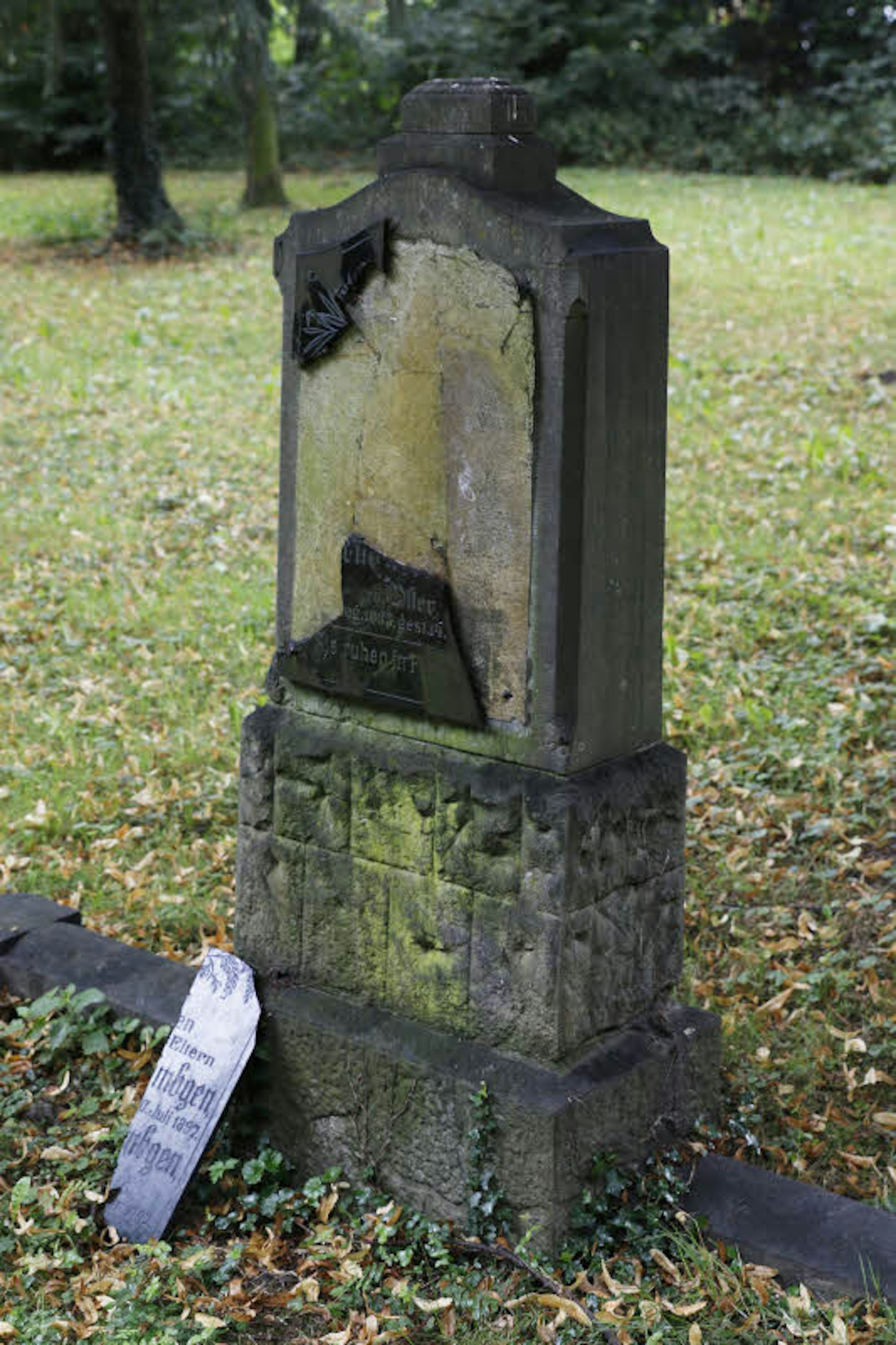 Zerstörte Grabtafel.