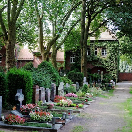 - Der Friedhof an der Decksteiner Straße ist eine wilde Grünanlage mit überwucherten, manchmal von Unbekannten beschädigten Gräbern und geheimnisvoll-schaurigem Ambiente.