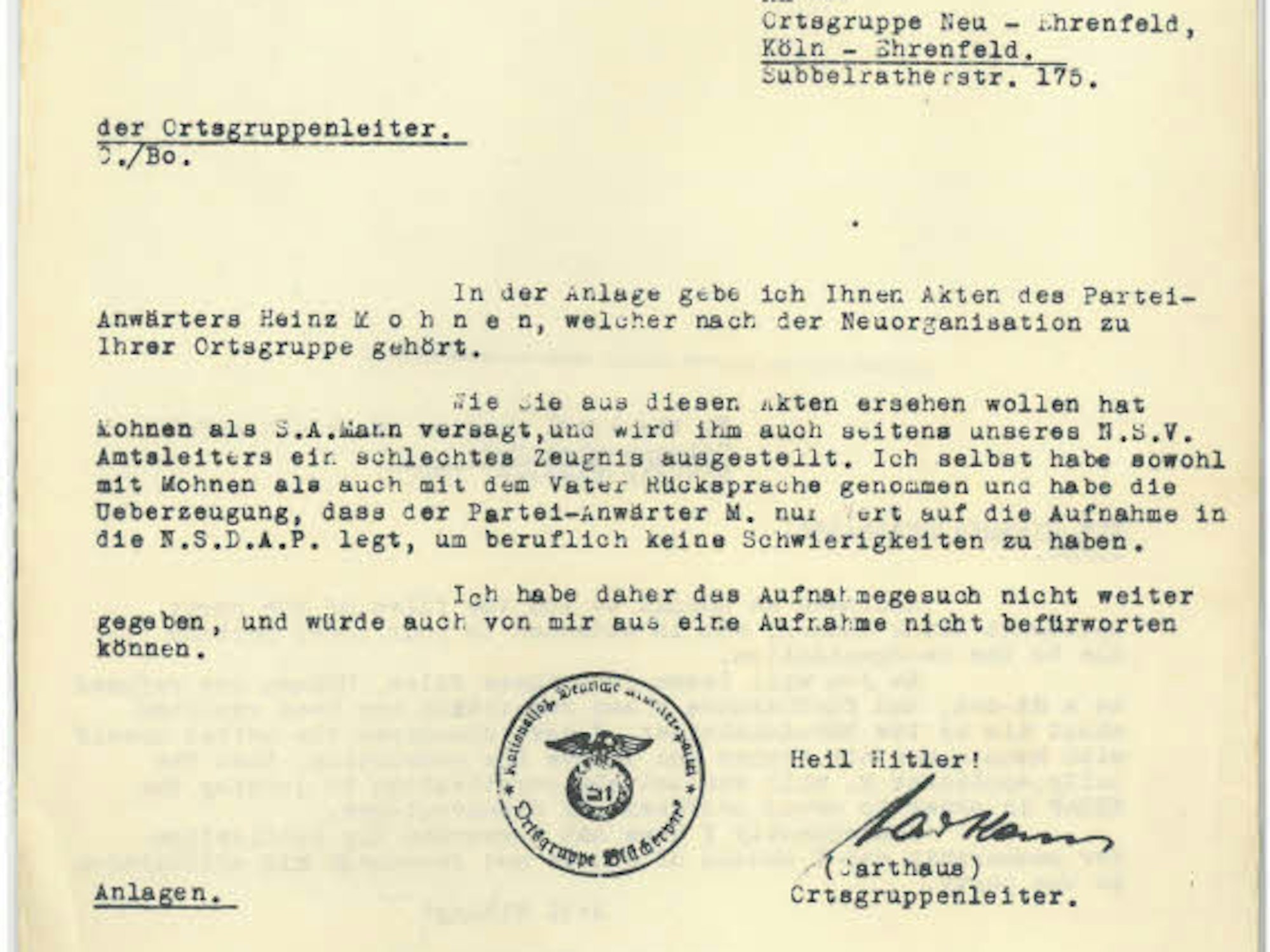 - Klar ist, dass der spätere Oberstadtdirektor Mitglied des NSDAP und der Kampforganisation SA war.