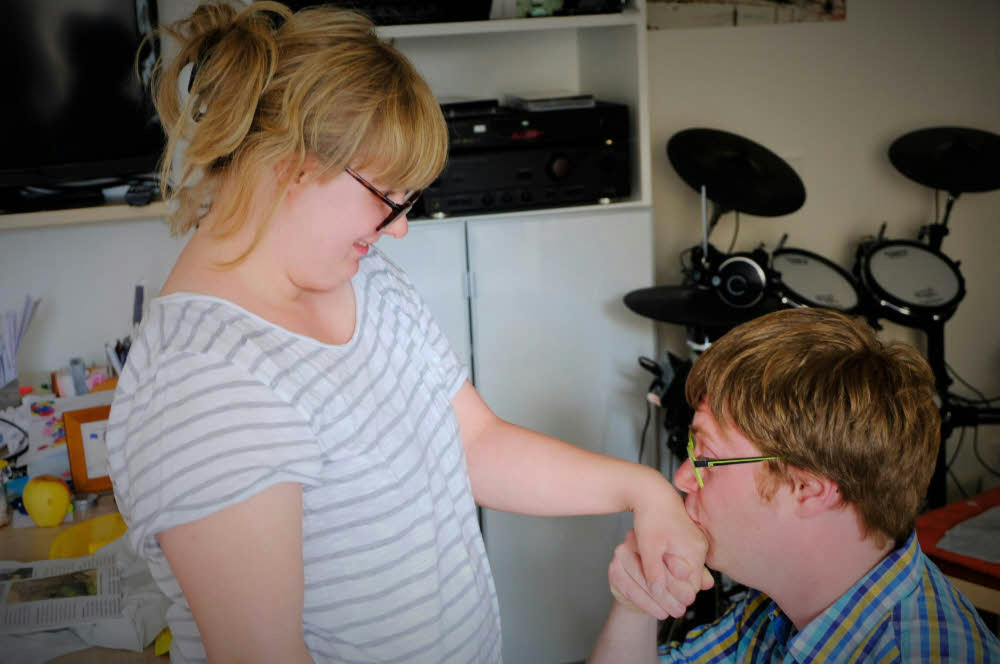 Die Lebenshilfe Köln hat von der GWG Sülz drei große Wohnungen gemietet, um Menschen wie Dennis und Ansgar ein möglichst eigenständiges Leben zu ermöglichen. Ansgars Freundin Maylin Thelen wohnt auch in der WG. Er hat die junge Frau vor drei Jahren bei einem Kurs kennengelernt. Seitdem sind sie ein Paar.