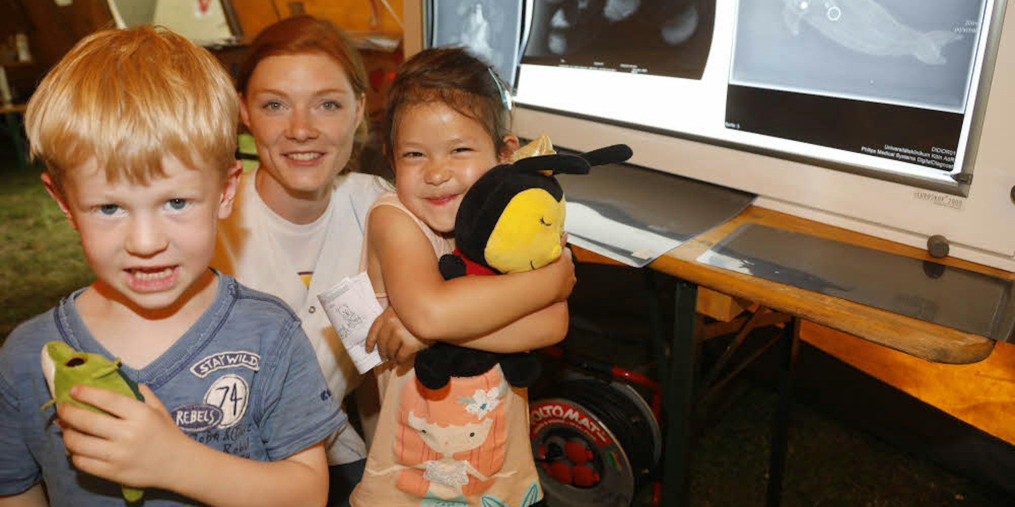 Die dreijährige Rika sitzt inzwischen im Behandlungszelt und horcht ihre Biene mit einem Stethoskop ab. Zusammen mit einer Teddy-Ärztin verbindet sie den verletzten Flügel. An der Röntgenstation werden Biene Maja und Gecko auf einer Liege durch einen roten Spieletunnel geschoben. Zusammen mit Monika Quodt betrachten die Kinder anschließend die (schon vorgefertigten) Röntgenbilder. Die Diagnose ist eindeutig: Gecko hat Münzen verschluckt, Biene Maja eine Büroklammer.