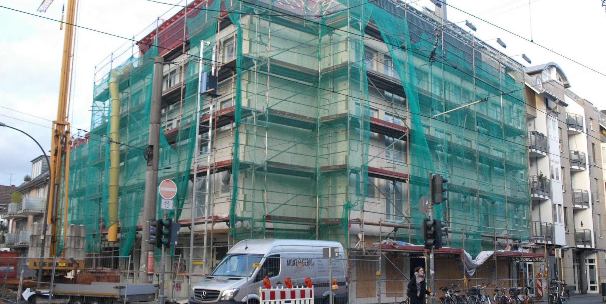 Lange stand das Haus an der Zülpicher Straße leer, jetzt ist es eingerüstet und wird saniert.
