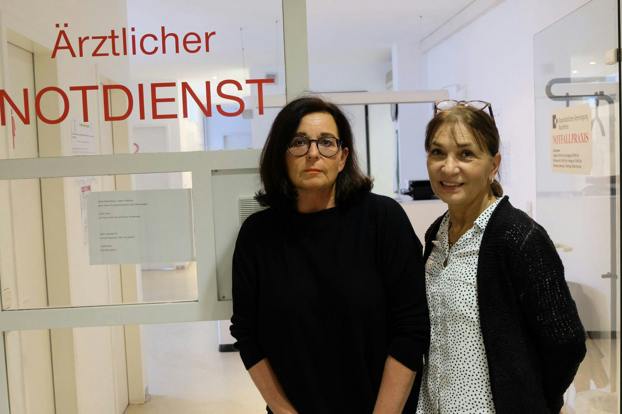 Claudia Dambowy (r.) und Beata Lachowski vor der notdienstlichen Hausarztpraxis an der Bunzlauer Straße in Weiden