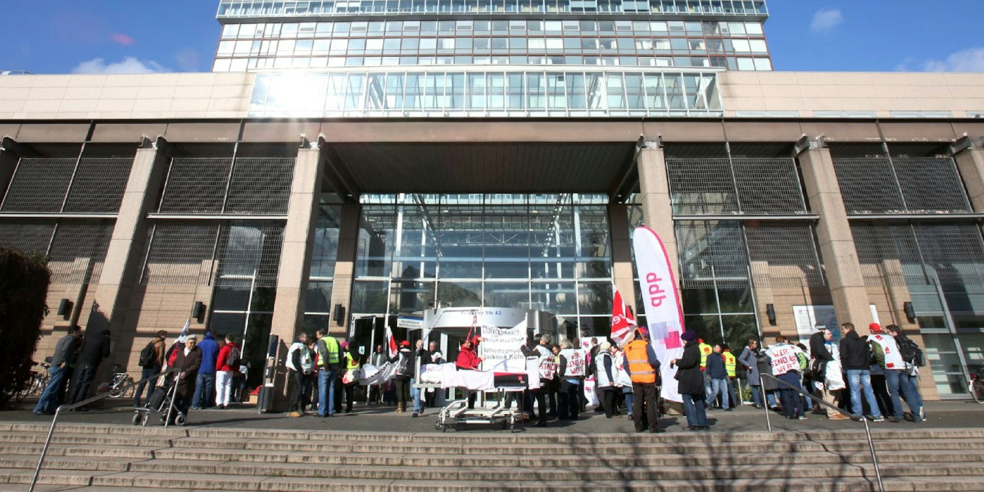 Auch an der Kölner Uniklinik wird es zu Terminverschiebungen und langen Wartezeiten kommen. Hier legen Pfleger, Krankenschwestern, Verwaltungs- sowie Küchenmitarbeiter die Arbeit nieder.
