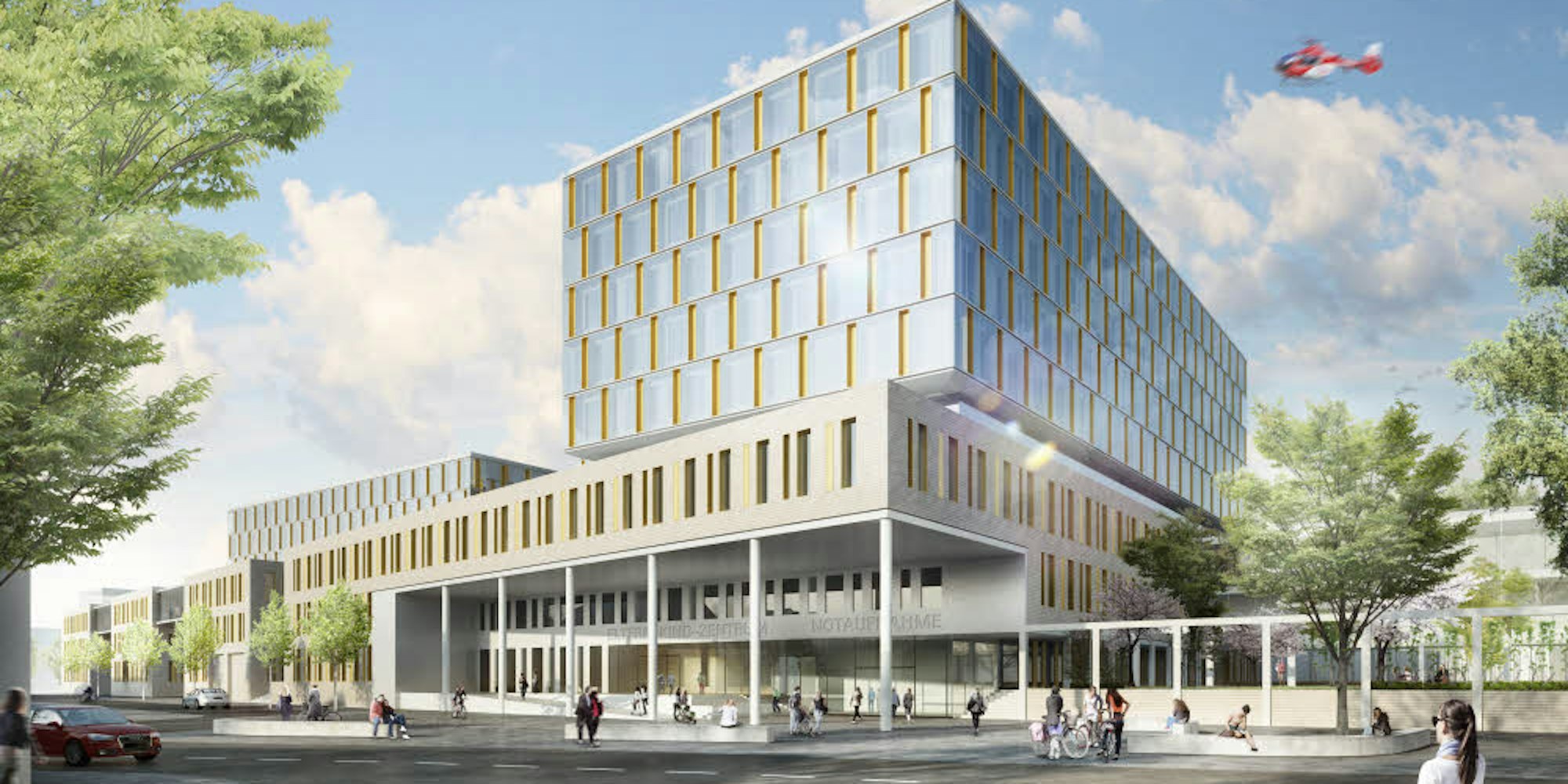 Die neue zentrale Notaufnahme soll eine schnelle und bestmögliche Versorgung Schwerstverletzter gewährleisten. Sie können im neuen Operationszentrum weiterversorgt werden. Die derzeit noch in verschiedenen Kliniken gelegenen OP-Säle werden im neuen Haus zentralisiert.