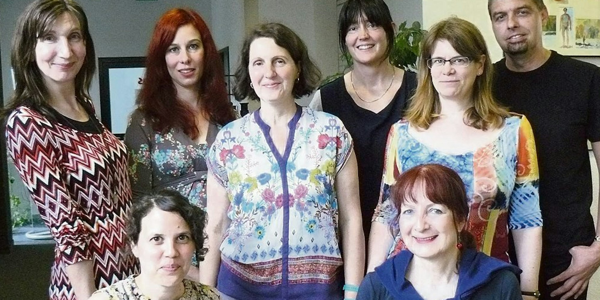 Jannechie Groz (von links), Julia Faust, Christine Ammann, Dagmar Quadder, Kirsten Knauf, Lutz Becker. Ganz vorne: Cecilia Nunes Raimundo (l.), Monika Hambuch.