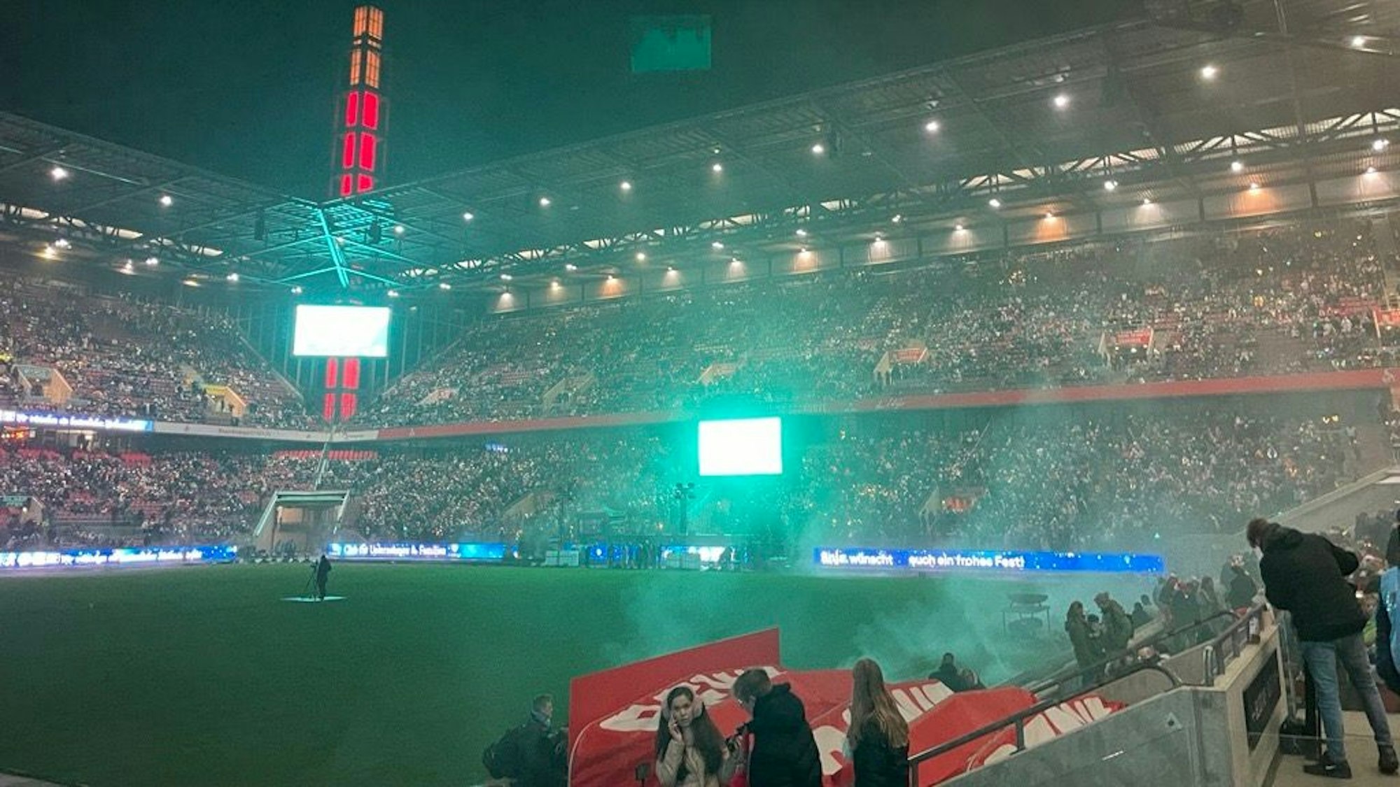 Am Montagabend ist im Rhein-Energier-Stadion wieder Kölns größter Chor zusammengekommen. Nach einer kleinen Verzögerung zu Beginn erklang „Alle Jahre wieder“.