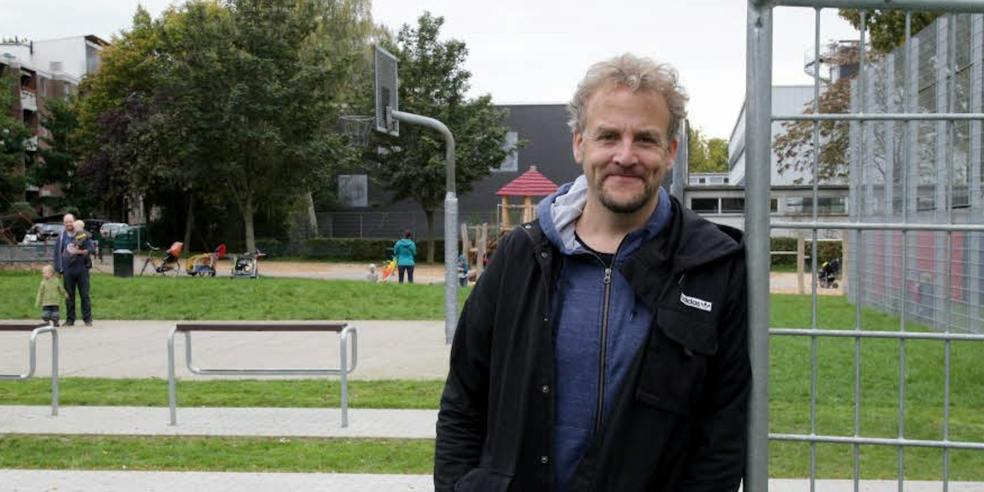 Und er schwärmt noch von den Klassenspielen – Fußballmatches der Klasse a gegen die b gegen die c. „Das war ernster als Olympia“, sagt Dän, als er im sogenannten Räuberwäldchen steht, dem Spielplatz an der Ecke von Düstemich- und Linzer Straße. Ohne Wäldchen übrigens. „Keine Ahnung, warum das so heißt“, gibt Dän zu. „Aber es hat immer so geheißen. Und heute komme ich mit meinen Jungs zum Bolzen her.“ Auch da kommen Erinnerungen hoch: Elf Jahre lang spielte Dän Fußball für die DJK Südwest an der Berrenrather Straße 173. „Mit 17 musste ich allerdings aufhören“, erzählt der Echo-Preisträger. „In dem Jahr zwischen 16 und 17 bin ich 20 Zentimeter gewachsen, das haben meine Knie nicht mitgemacht.“ Diagnose: Knorpelschaden, Schluss mit Fußball. An seine 1,98 Meter hat er sich nun aber gewöhnt, stößt sich den Kopf nicht mehr so oft wie damals, und Sohn Noah führt die vereinsgebundene Fußballtradition fort.