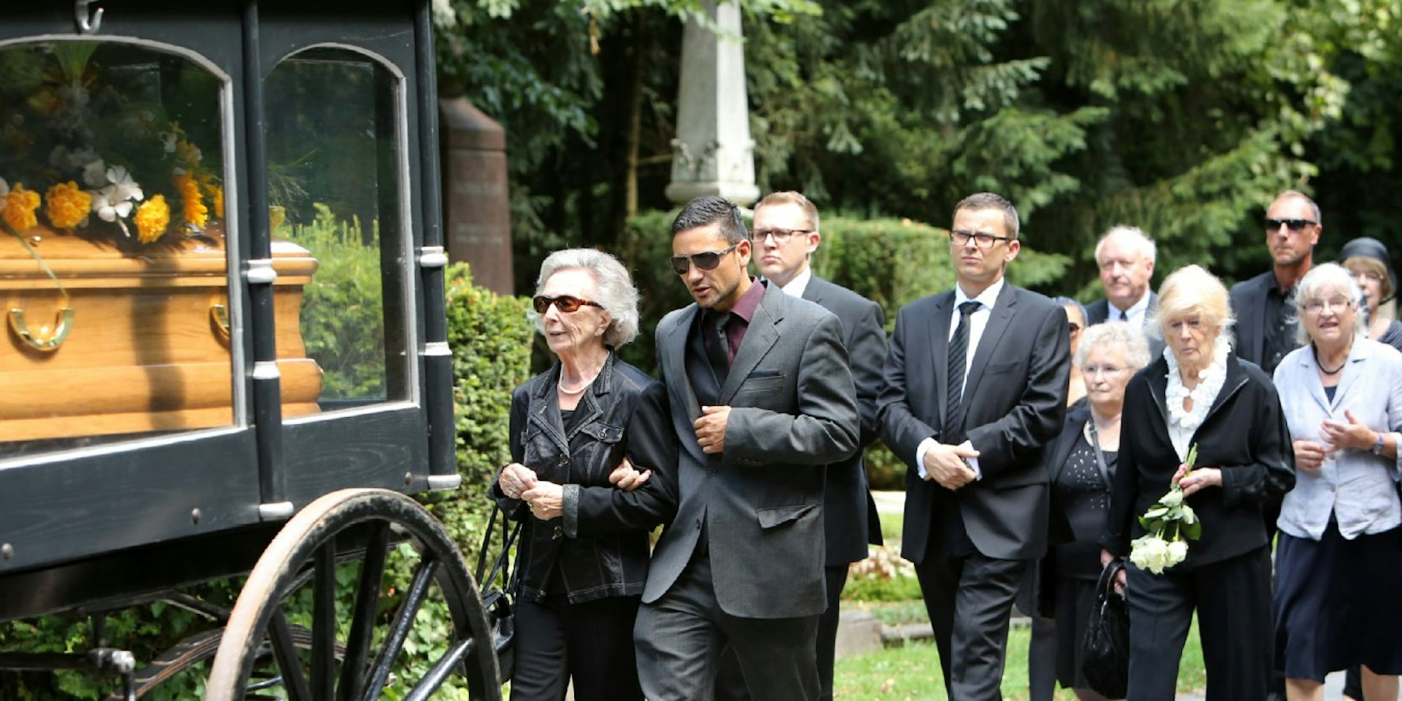 Eine Kutsche brachte Hanns Schaefer zu seinem Grab auf Melaten. Familienangehörige und Weggefährten bildeten den Trauerzug.