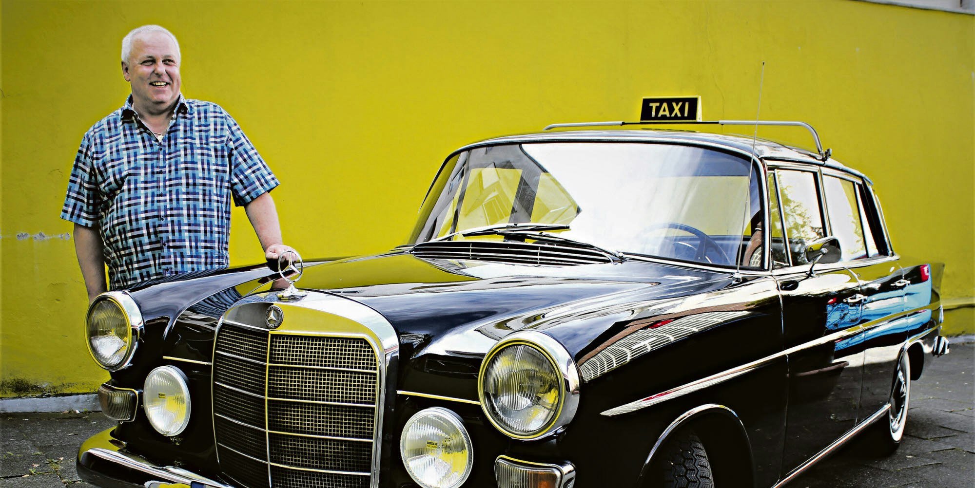 Das haben wir erlebt: Die Taxifahrer freuen sich, wenn sie mich sehen und fragen mich, ob ich die neuen Tarife schon kenne. In Deutz wollten auch mal ein paar Mädels vor einem Hotel mitfahren. Da musste ich ihnen leider zu verstehen geben, dass ich kein Taxifahrer bin. Der Verkäufer hat mir versichert, dass ich mit dem Schild fahren darf. Auch die Polizei hat bis jetzt noch keine Probleme gemacht. Nur die zweijährige Tochter meines Bruders stellte sich eines Tages, als ich mit dem Benz beschäftigt war, neben mich und sagte: „Komisches Auto.“ Das haben wir vor: Nichts Besonderes. Ich fahre damit spazieren und bocke ihn im Winter hoch. Ein Taxi-Unternehmen will ich auf jeden Fall nicht gründen.